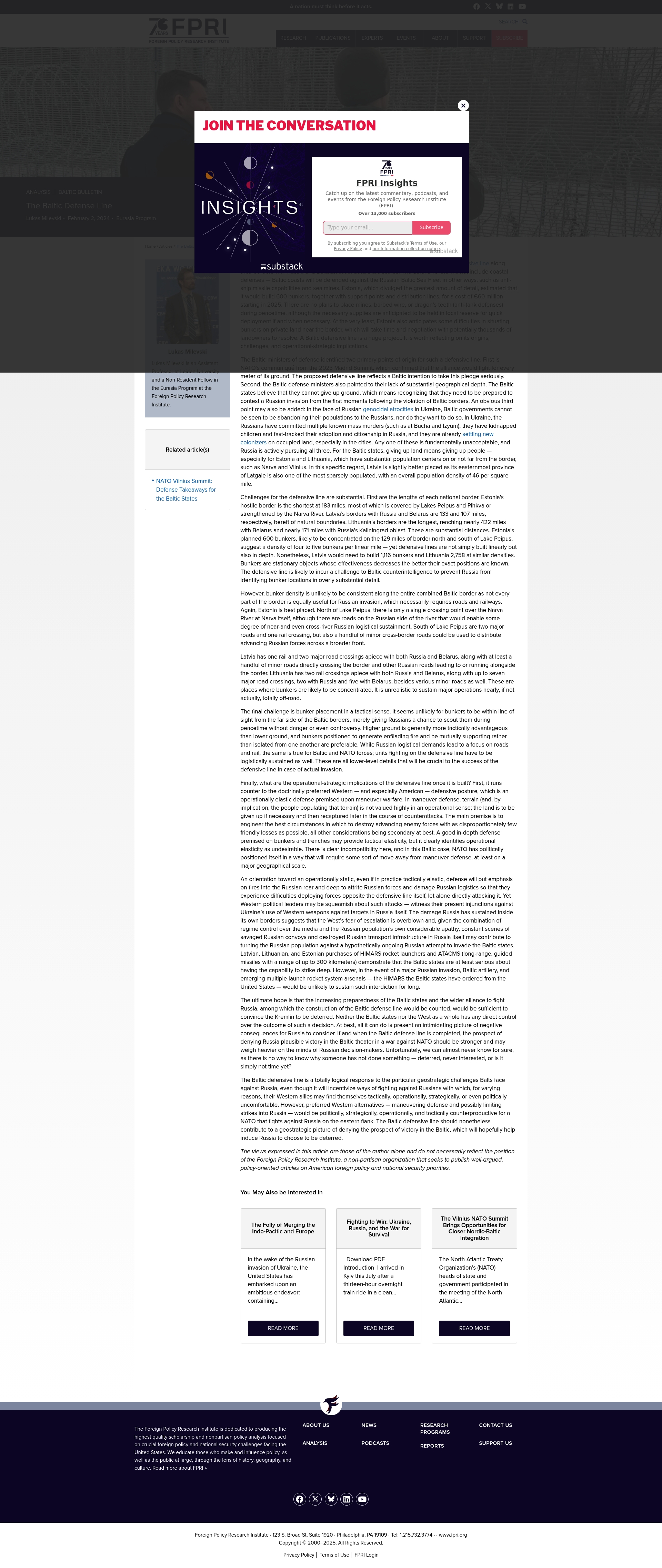 Short Summary: The Baltic states are planning an extensive defensive line along their borders with Russia and Belarus, seeking to deter or slow a possible large-scale invasion.