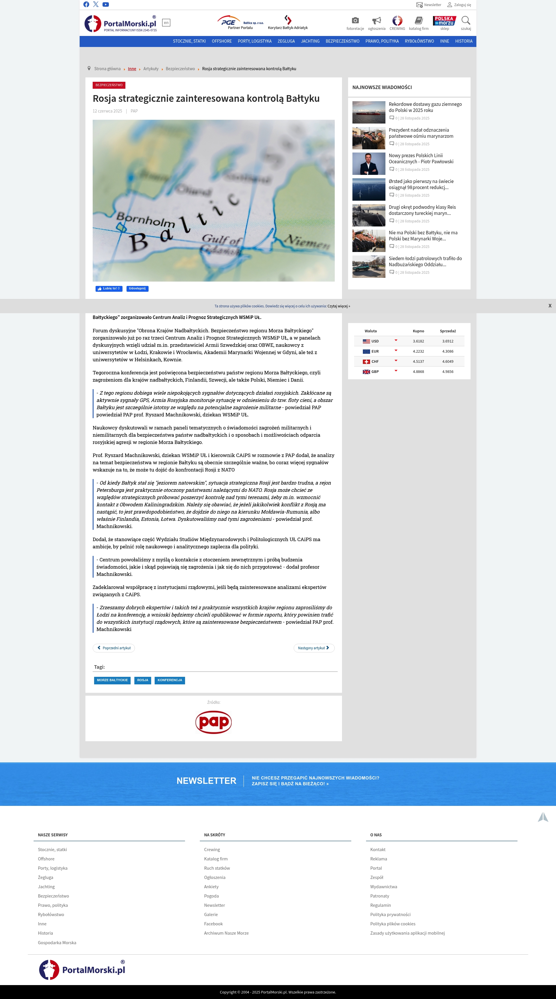 A forum discussion titled 'Defense of the Nordic Countries. Security of the Baltic Sea region' organized by the Center for Analysis and Strategic Forecasts at the Maritime University of Gdynia highlighted growing Russian military activity and interest in controlling the Baltic Sea. The Russian military is actively monitoring GPS signals and is especially focused on the so-called 'shadow fleet' and control over the Baltic Sea area, considered strategically critical. Prof. Ryszard Machnikowski noted the increasing signals of potential confrontations between Russia and NATO, emphasizing the strategic complexity of the region around St. Petersburg and Kaliningrad. He warned that conflicts with Russia could potentially escalate towards Moldova-Romania or Finland, Estonia, Latvia. The Center aims to provide scientific and analytical support for policy and to collaborate with government institutions concerned with regional security.