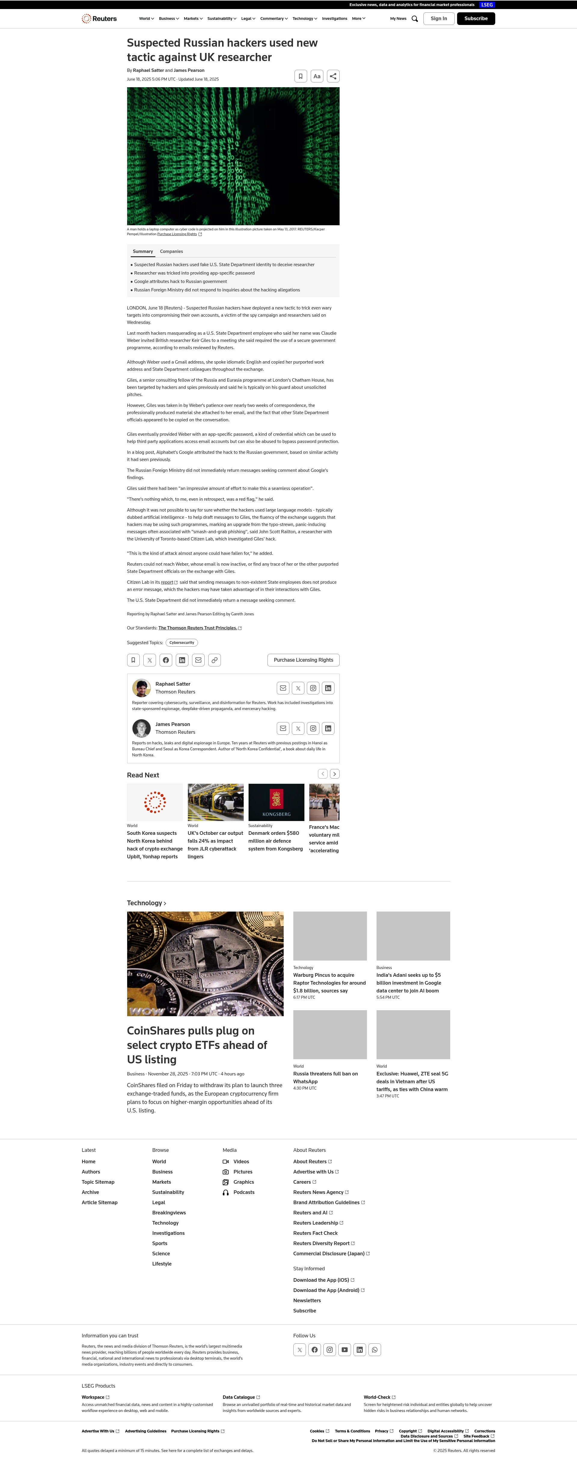 "url": "https://www.reuters.com/technology/suspected-russian-hackers-used-new-tactic-against-uk-researcher-2025-06-18"