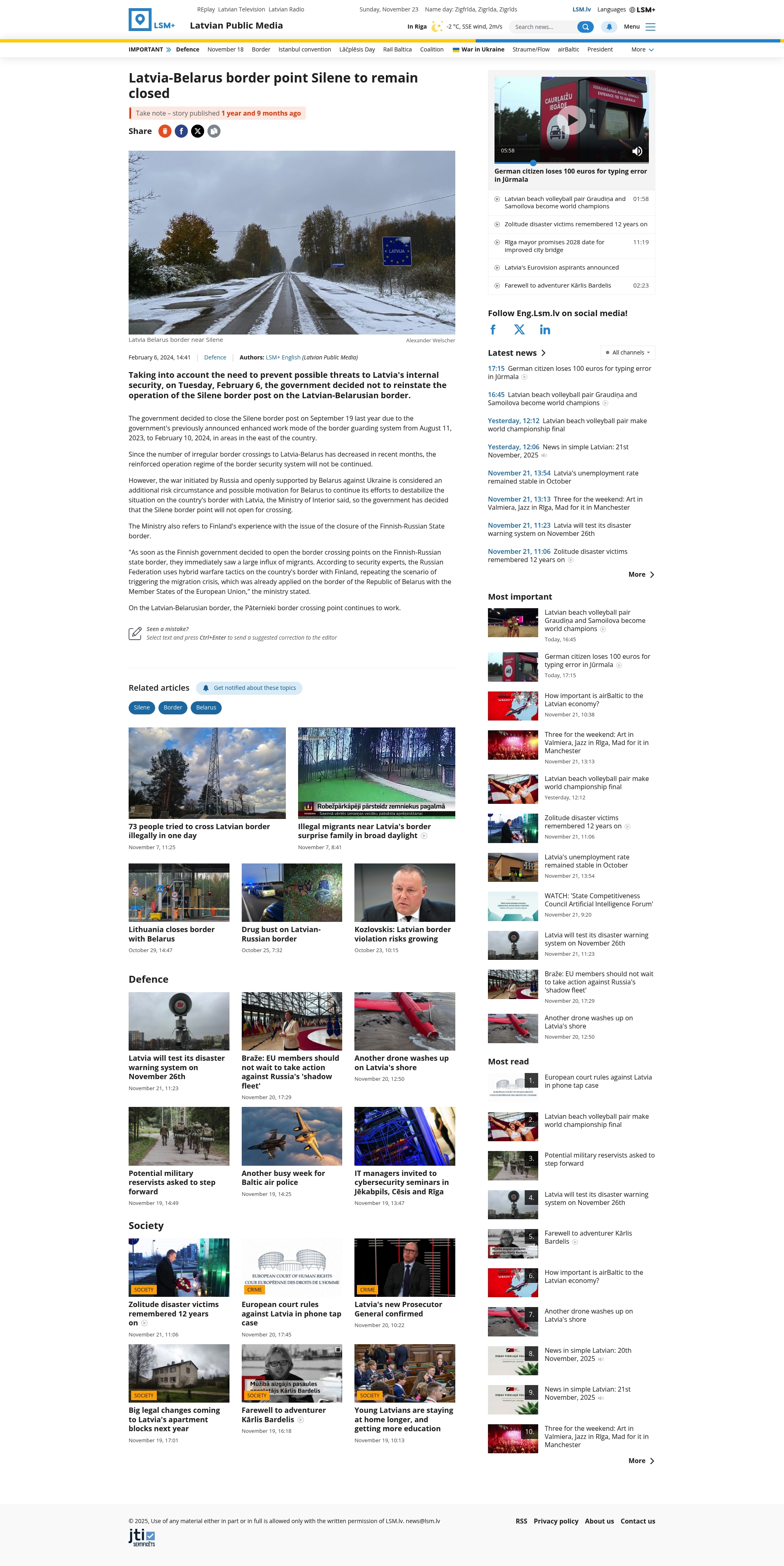 - "Taking into account the need to prevent possible threats to Latvia's internal security, on Tuesday, February 6, the government decided not to reinstate the operation of the Silene border post on the L..."