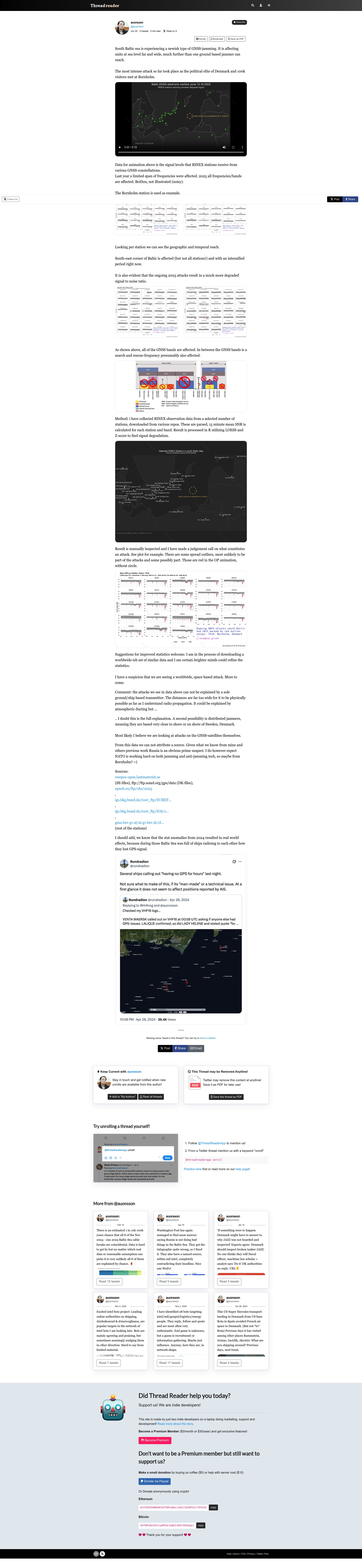 The thread analyzes recent GPS spoofing incidents affecting ships across the Baltic Sea. GPS signals were reportedly manipulated over a large maritime area, impacting navigational systems for multiple commercial and military vessels. The manipulation was detected primarily near Denmark and southern Sweden, with several vessels reporting GPS errors causing navigation confusion. Data from AIS (Automatic Identification System) sources showed anomalous positional data that matches patterns consistent with GPS spoofing. The timeline of incidents suggests the spoofing has been ongoing for multiple days, raising concerns about maritime safety and security in this geopolitically sensitive region.