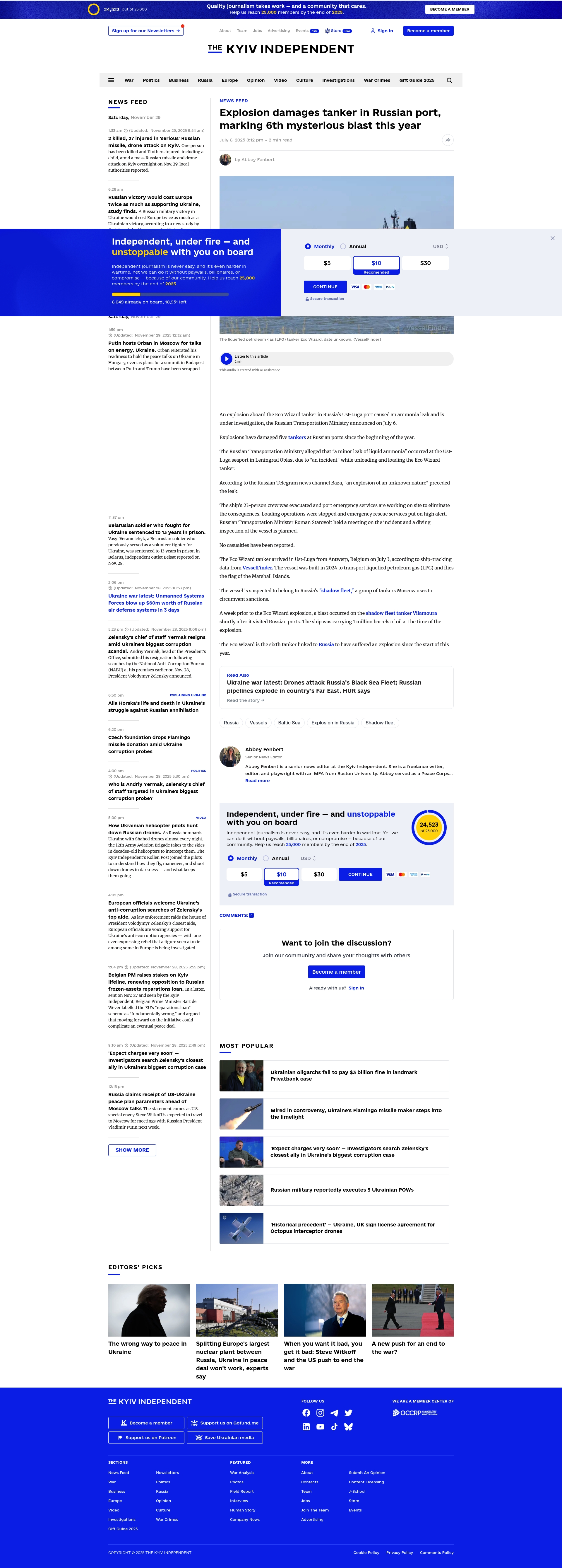 URL:https://kyivindependent.com/explosion-on-tanker-in-russian-port-sparks-investigation-06-2025/🔗Archive:Archived HTML