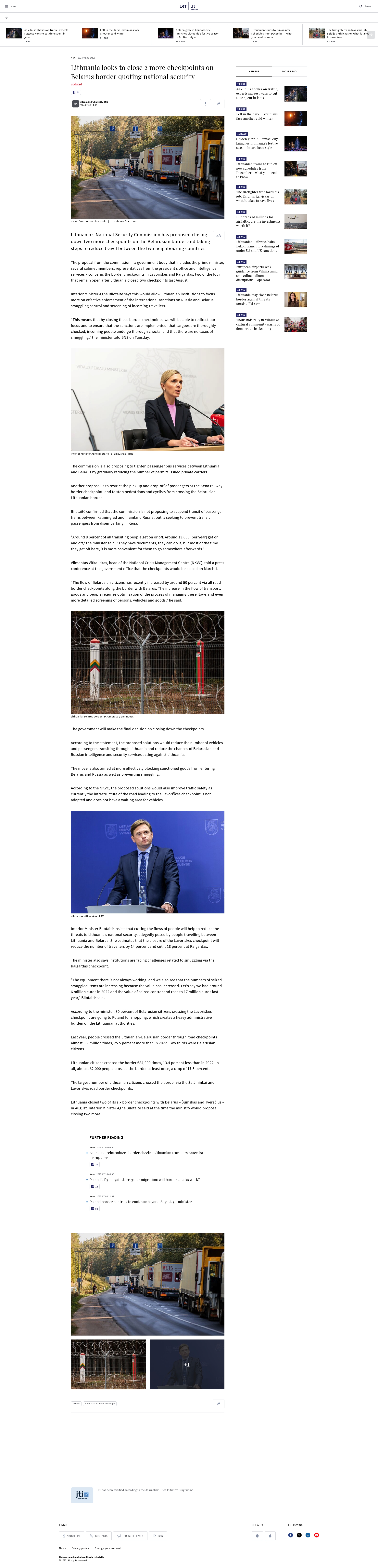 - "Lithuania’s National Security Commission has proposed closing down two more checkpoints on the Belarusian border and taking steps to reduce travel between the two neighbouring countries."