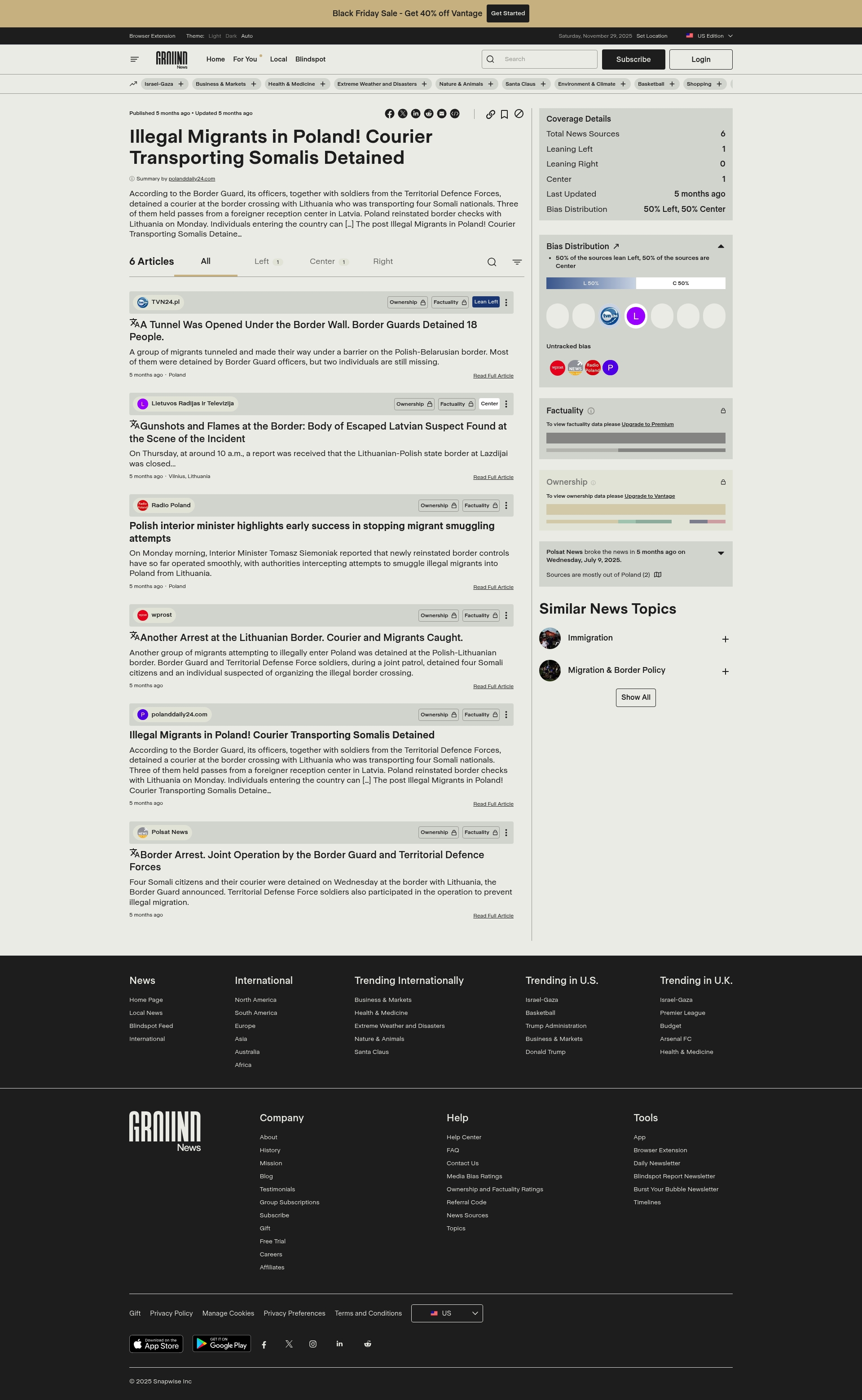 Four Somali nationals and their courier were detained at the border between Poland and Lithuania in a joint operation by the Polish Border Guard and Territorial Defence Forces. The courier was transporting four Somali migrants who possessed passes from a foreign reception center in Latvia. The operation involved soldiers from the Territorial Defence Forces to prevent illegal migration and was conducted following Poland's reinstatement of border controls with Lithuania.