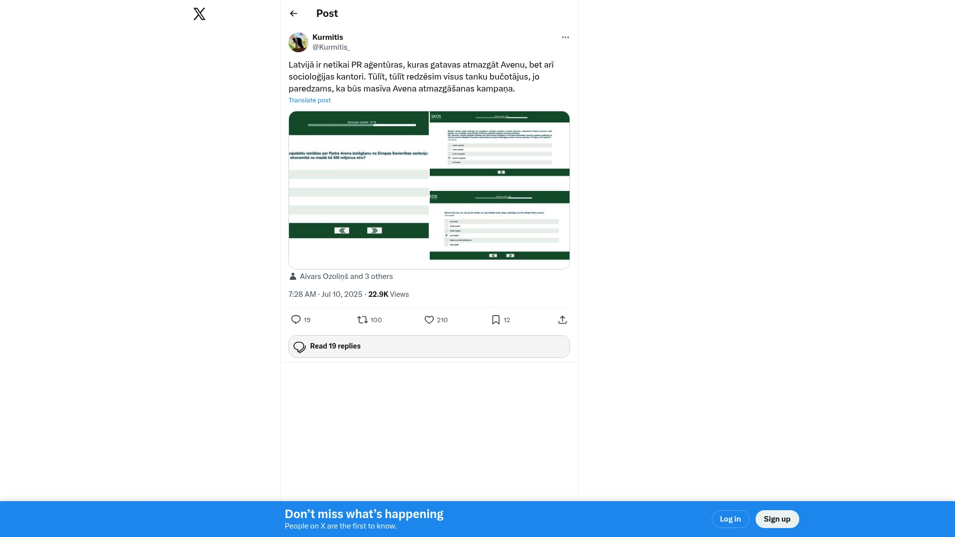 A social media post highlights that in Latvia there are not only PR agencies ready to 'wash' (whitewash) Piotr Avena, but also sociology offices. The post suggests that there will be a massive campaign to whitewash Avena, implicating the presence of public relations and sociological efforts to influence public perception regarding European Union sanctions and economic impact related to Piotr Avena.