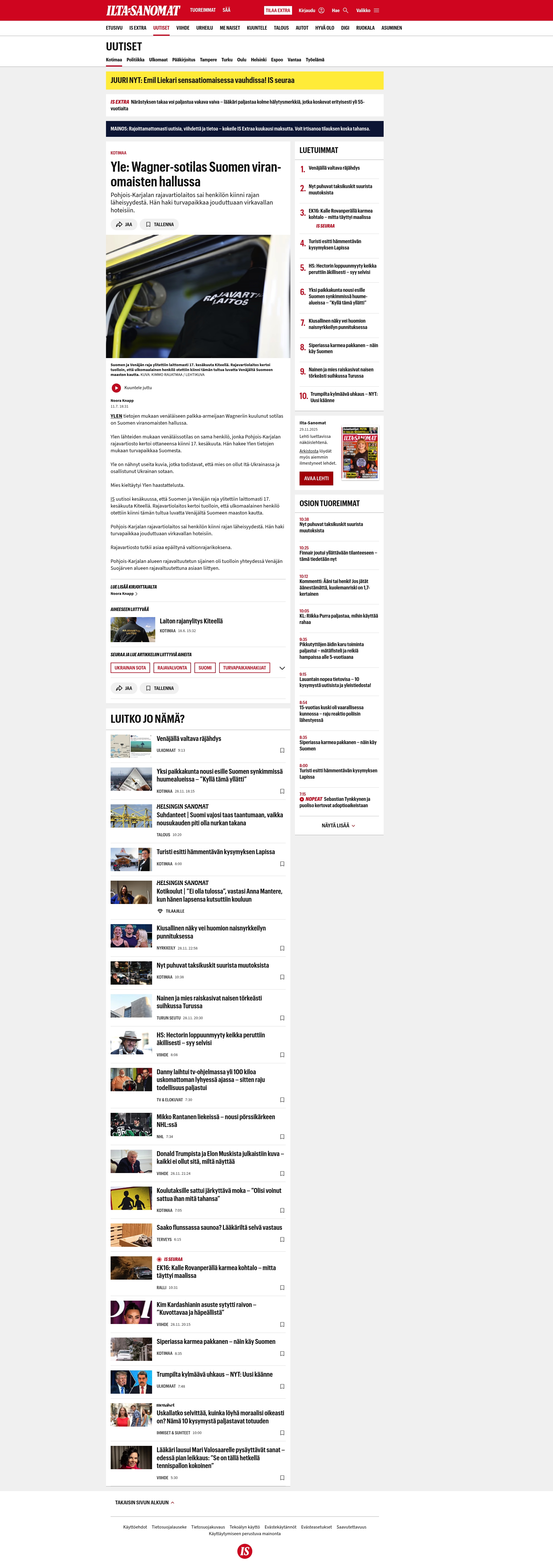 A Wagner mercenary soldier is reportedly in the custody of Finnish authorities near the Russian border in Northern Karelia. The individual was detained close to the border on January 17, 2023, and has been taken into official custody. It is stated that the soldier was not involved in any criminal acts and had previously participated in the war in Ukraine. The regional police have confirmed the apprehension and emphasized that the detained man is in their custody.