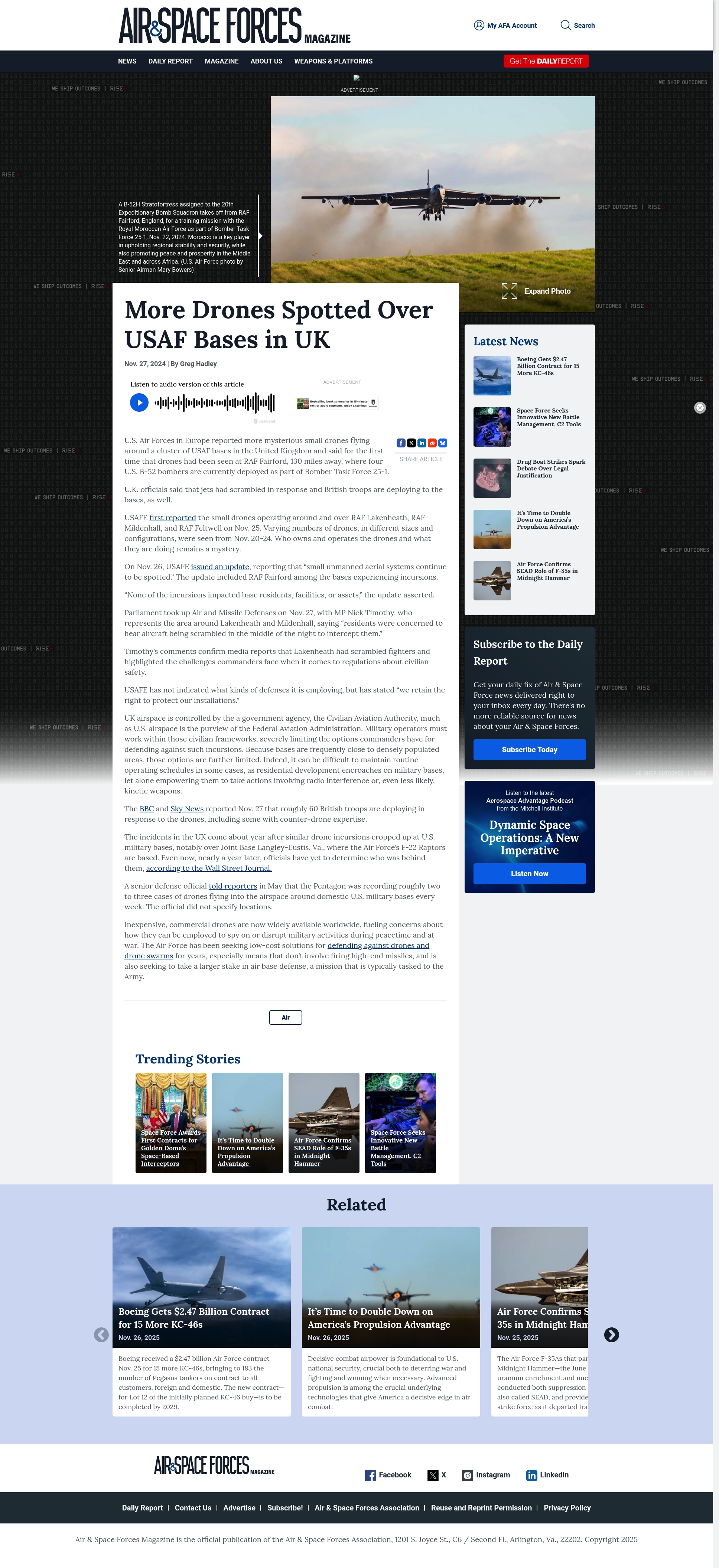 "title": "Drones Spotted Over USAF Bases in UK, Including One with B-52s",