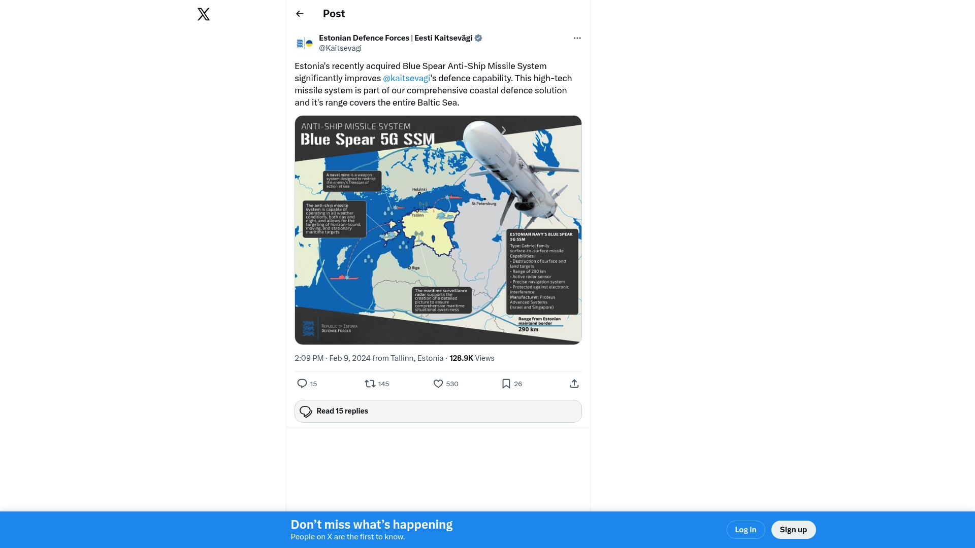 Sea Border(s) ??Estonian newly acquired Blue Spear Anti-Ship Missile System "is part of our comprehensive coastal defence solution and it's range covers the entire Baltic Sea."