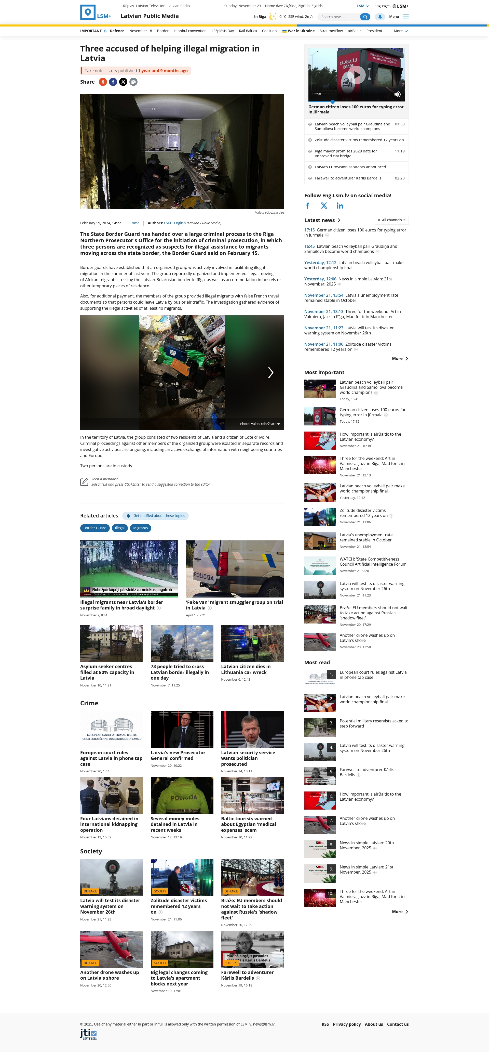 Headline: Three accused of helping illegal migration in Latvia