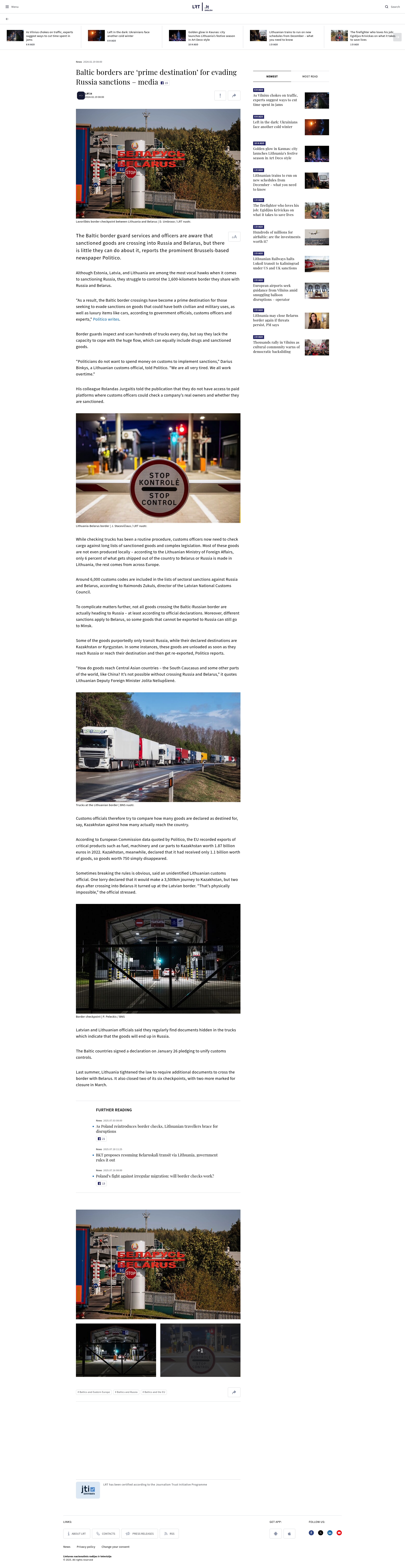 - "The Baltic border guard services and officers are aware that sanctioned goods are crossing into Russia and Belarus, but there is little they can do about it."