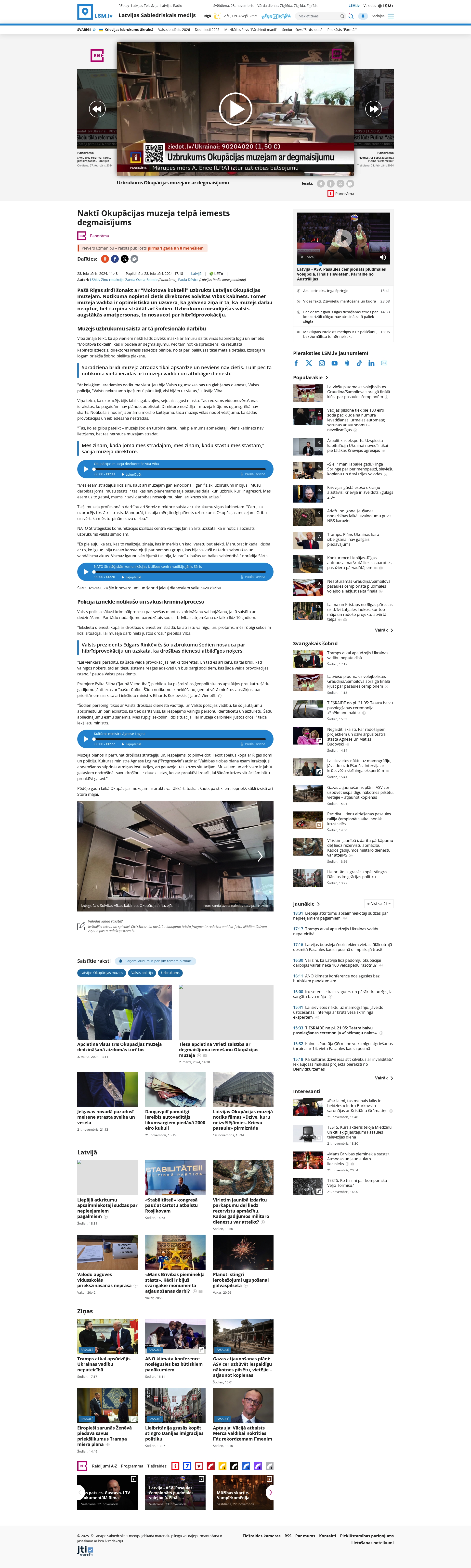 - "Muzeja darbiniekam saistībā ar notikušo norādījis, ka tas ir uzbrukums simboliskai vietai"