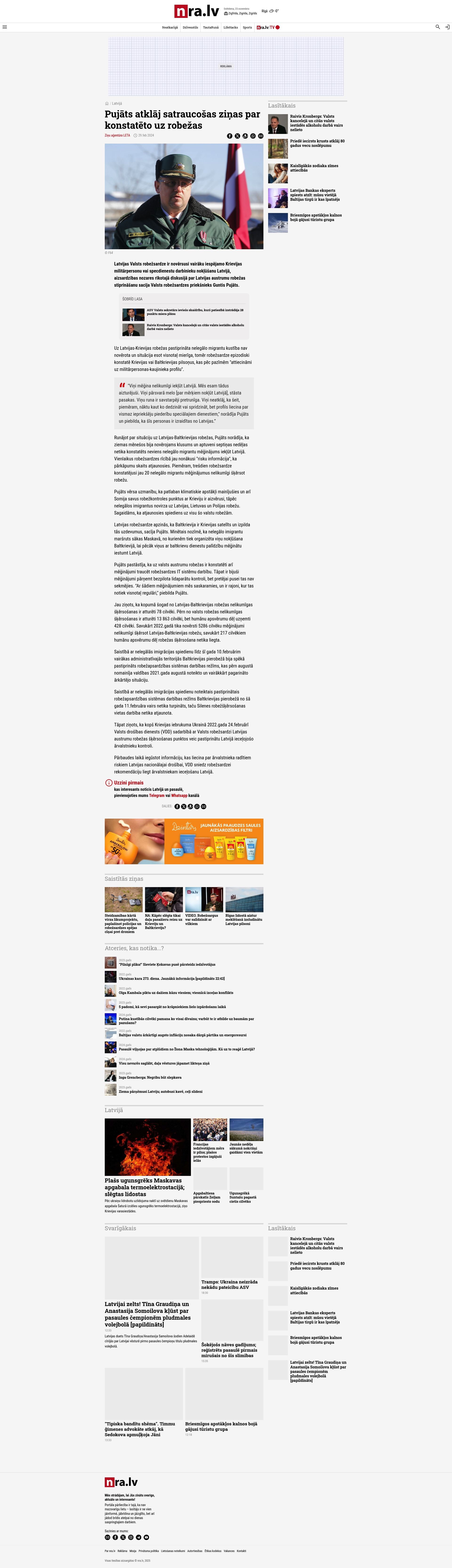 - "Latvijas Valsts robežsardzes priekšnieks Guntis Pujāts atklāja, ka uz Latvijas–Baltkrievijas robežas konstatēts pieaugošs nelikumīgas robežšķērsošanas gadījumu skaits."