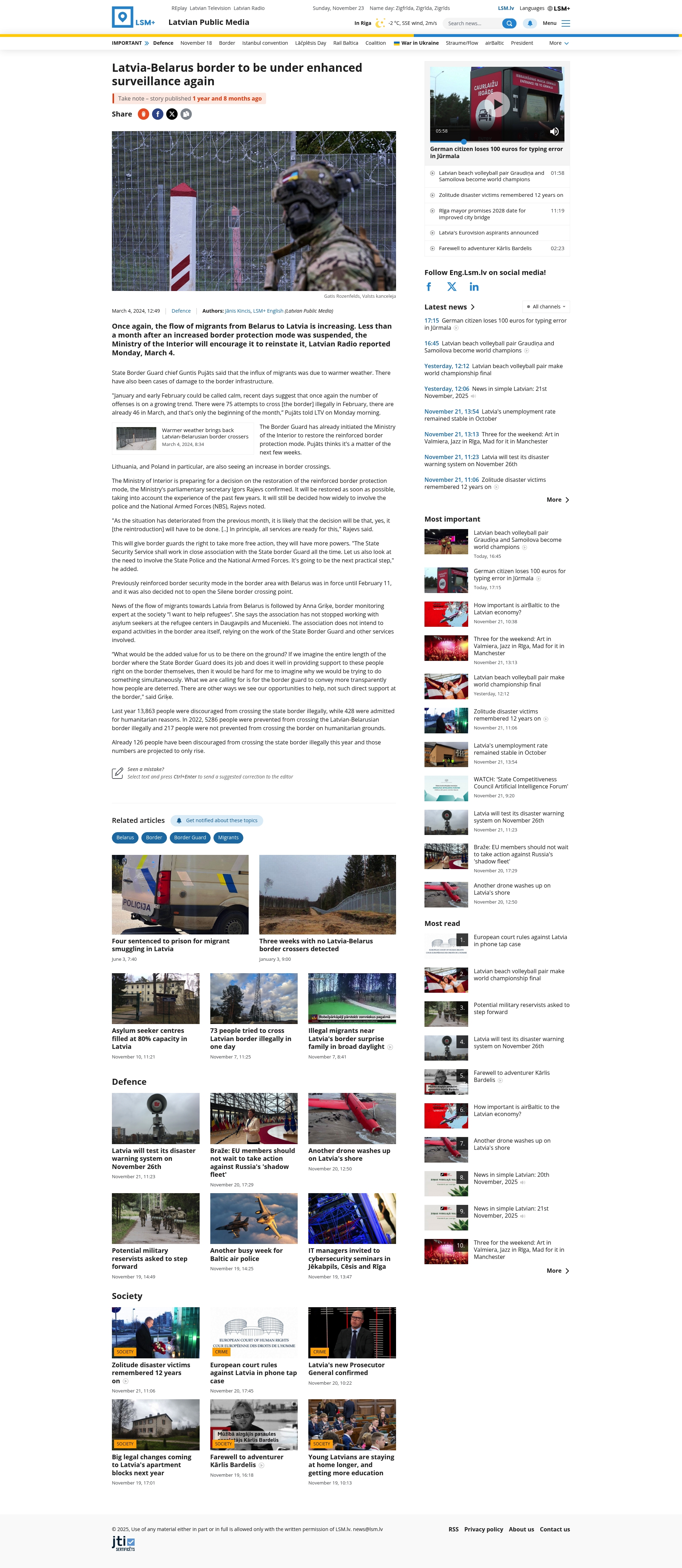 - "Once again, the flow of migrants from Belarus to Latvia is increasing. Less than a month after an increased border protection mode was suspended, the Ministry of the Interior will encourage it to rein..."