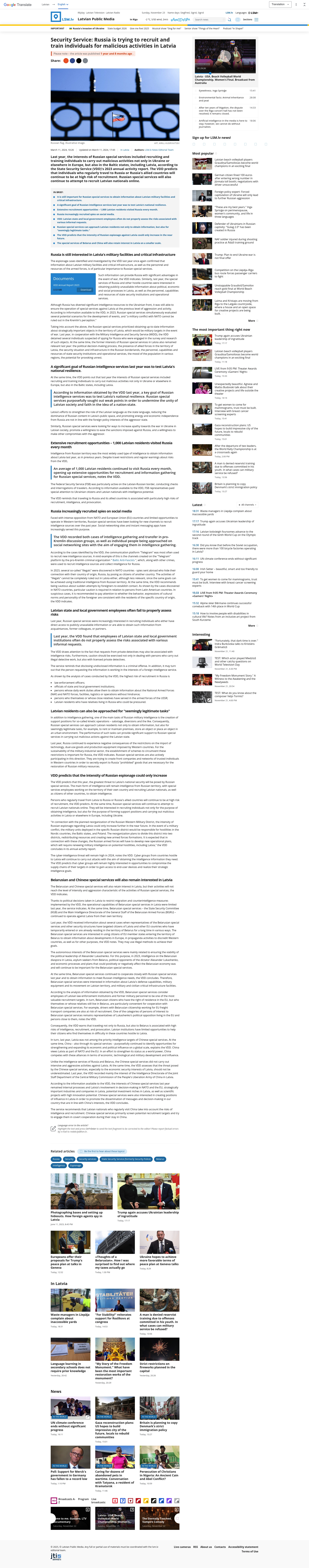 Headline: Security Service: Russia is trying to recruit and train individuals for malicious activities in Latvia