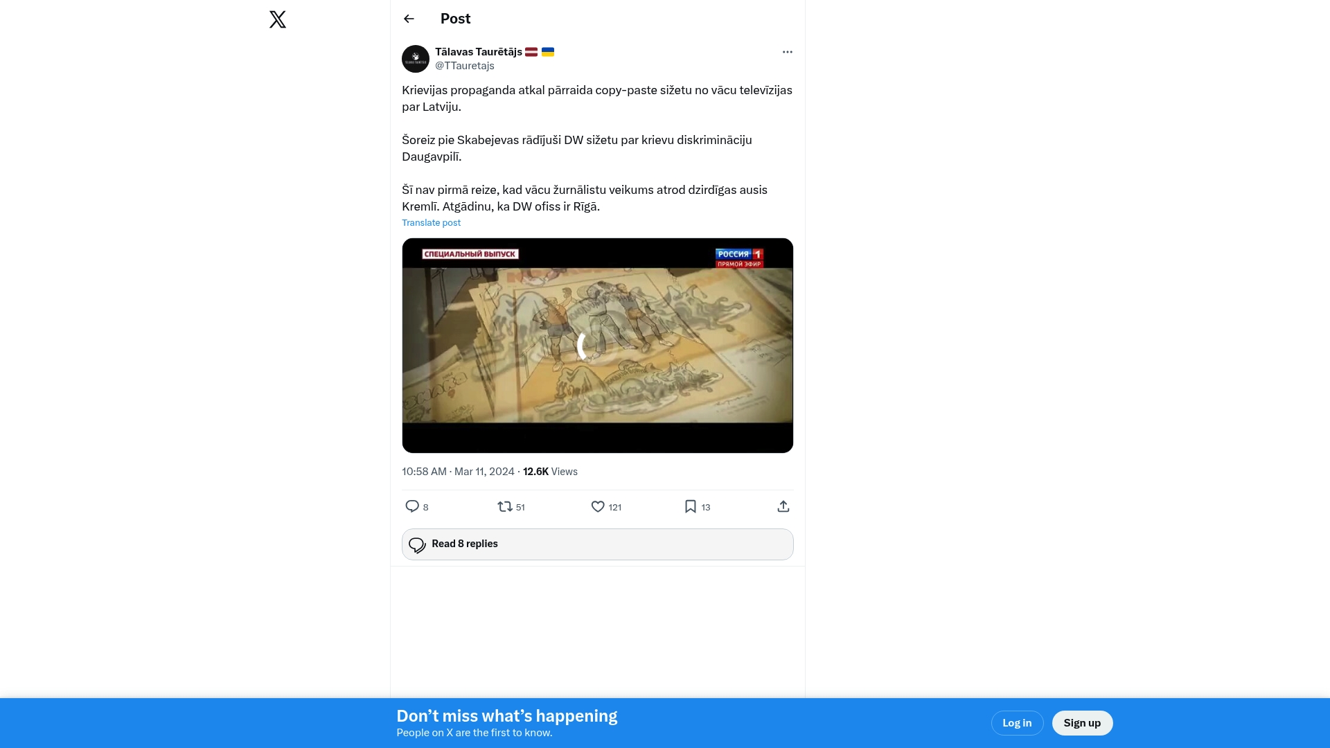- "Krievijas propaganda atkal pārraida copy-paste sižetu no vācu televīzijas par Latviju."
