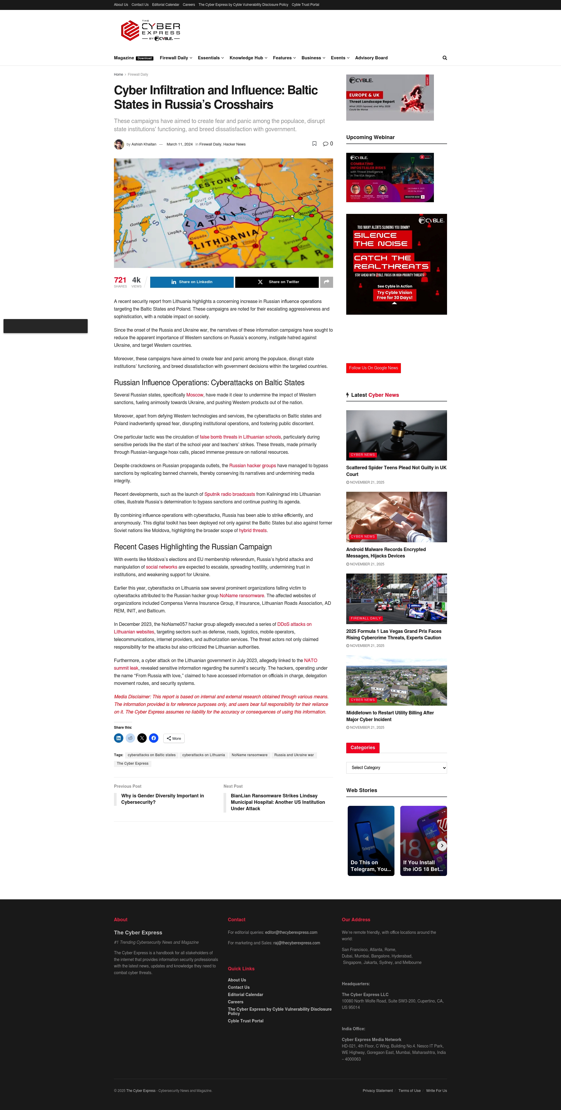 Headline: Cyber Infiltration and Influence: Baltic States in Russiaβs Crosshairs