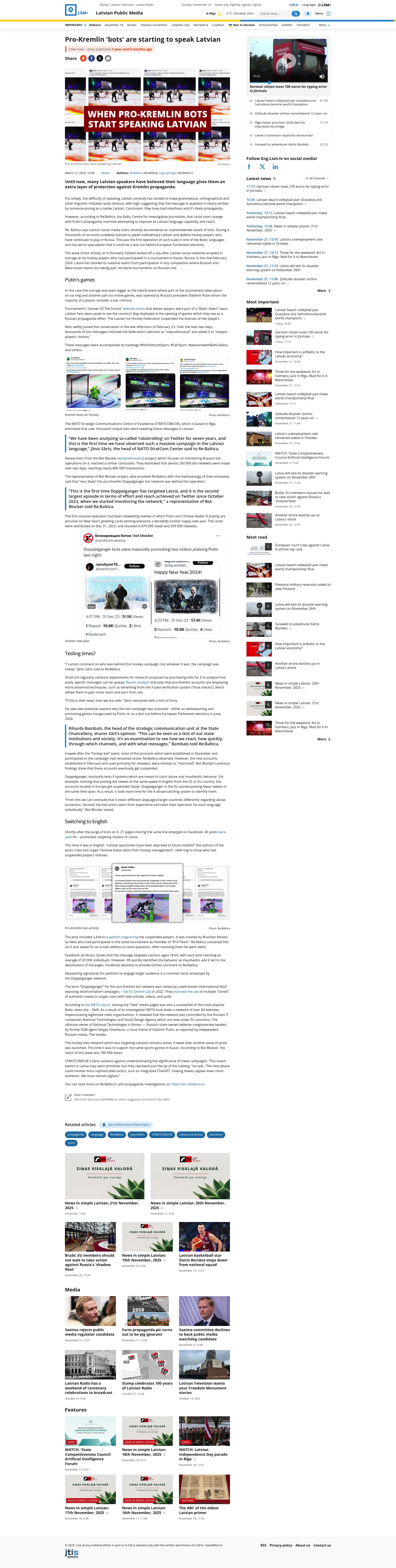 Headline: Pro-Kremlin 'bots' are starting to speak Latvian