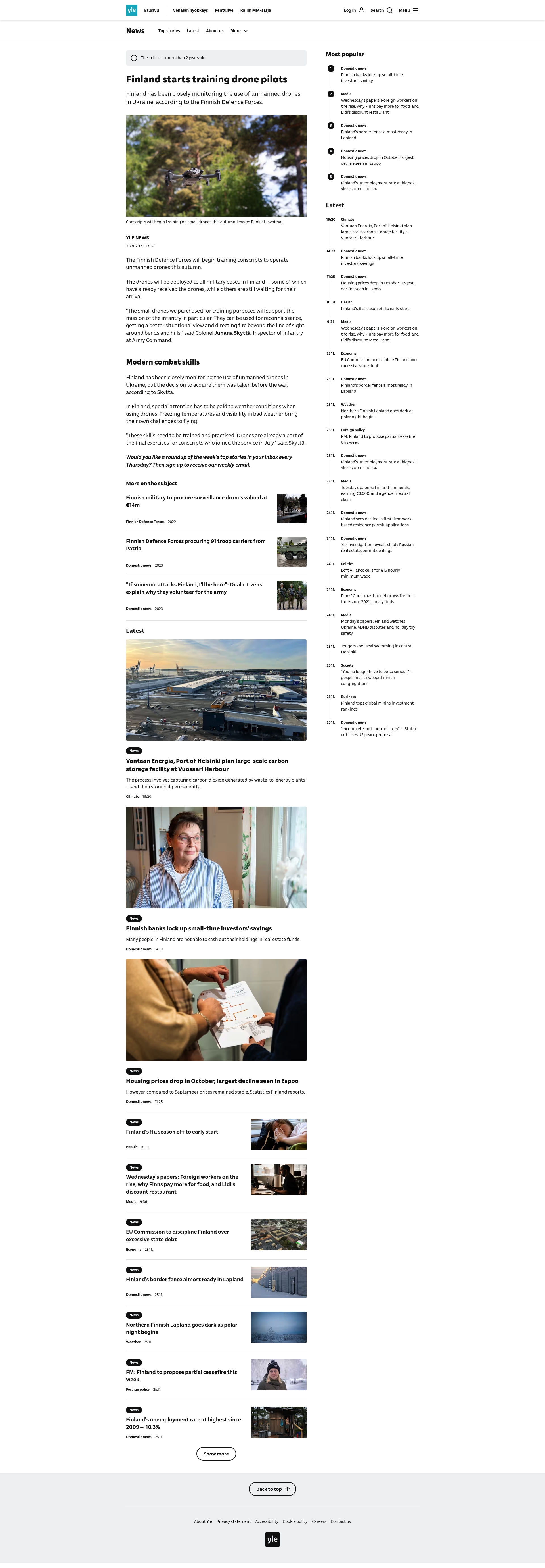 Extended Summary: The Finnish Defence Forces have started training conscripts in the operation of unmanned drones as of autumn 2023. These drones will be distributed to all military bases in Finland, with some bases already equipped while others await drones' arrival. The initiative aims to improve the infantry’s reconnaissance ability by providing situational awareness and the capacity to detect enemy fire beyond the line of sight. Finland's decision to acquire drones predates the Ukraine war, although recent conflict developments have influenced monitoring and training emphasis. Special consideration is given to Finnish weather conditions, with freezing temperatures and poor visibility posing specific operational challenges. This development is part of broader modernization efforts to bolster Finland's defense and readiness capabilities.