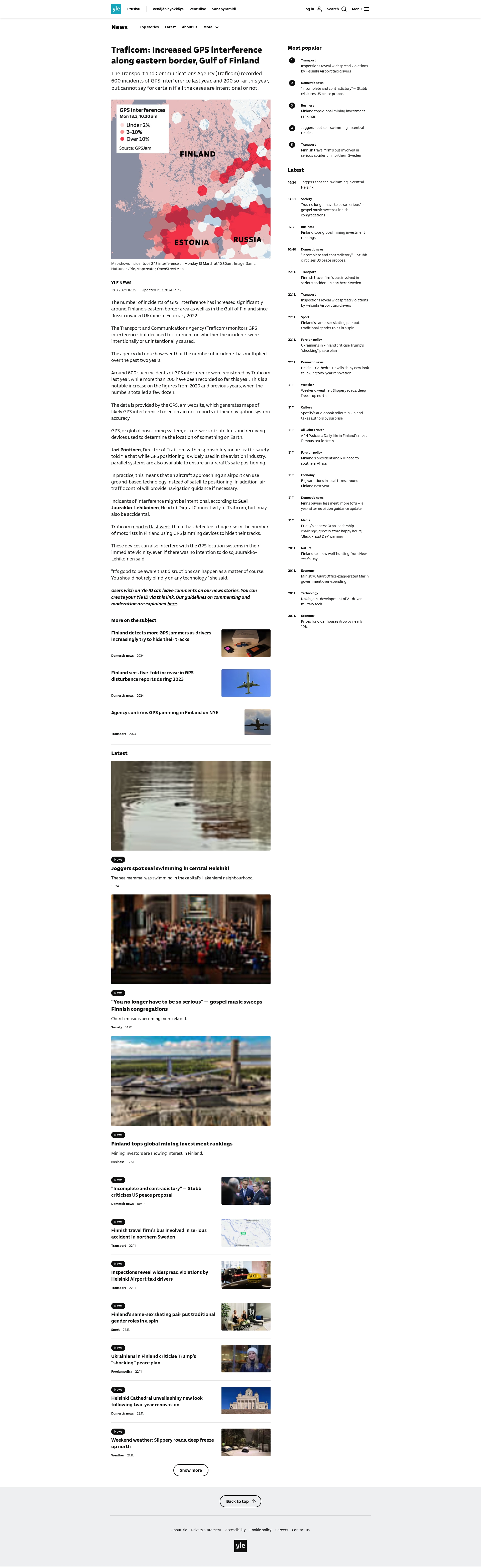 - ""Interference, in the Gulf of Finland in particular, has increased early in 2024," said agency official Jari Pöntinen."