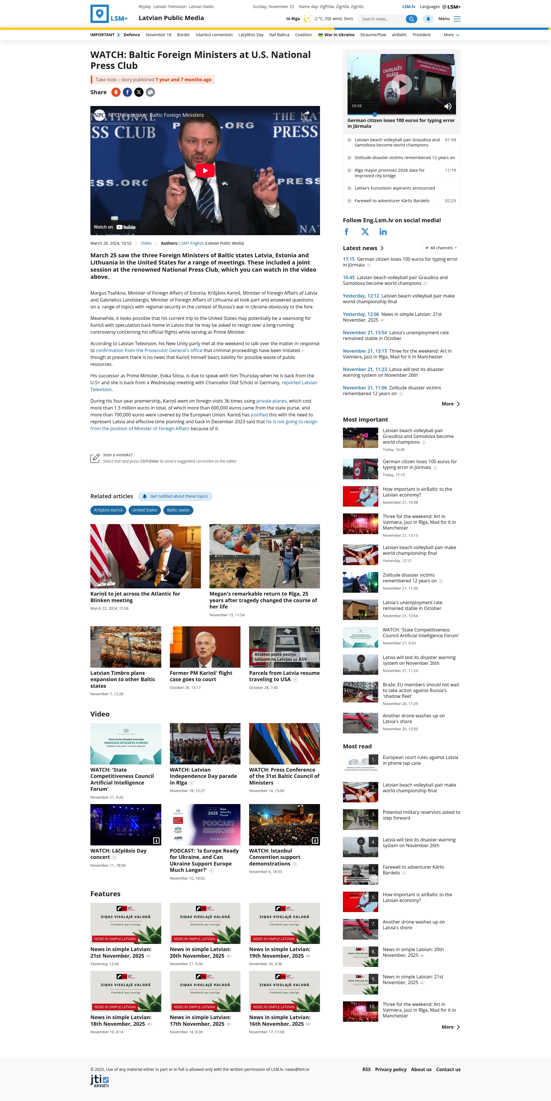 - "March 25 saw the three Foreign Ministers of Baltic states Latvia, Estonia and Lithuania in the United States for a range of meetings. These included a joint session at the renowned National Press Club..."