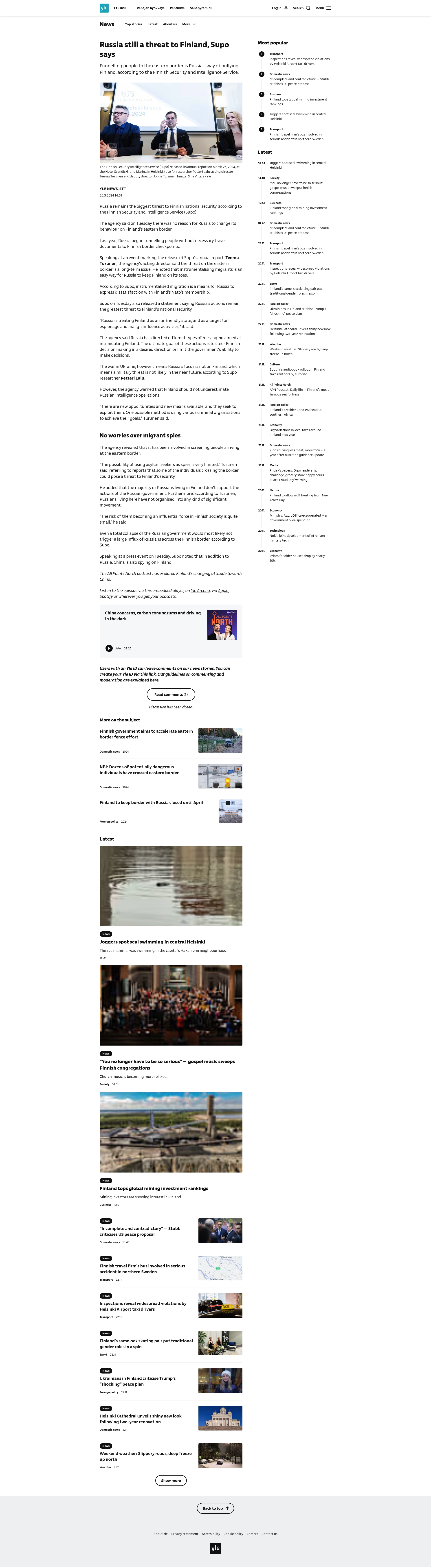 - "Supo said it did not believe that Russia was infiltrating spies into Finland along with migrants seeking to enter the country."