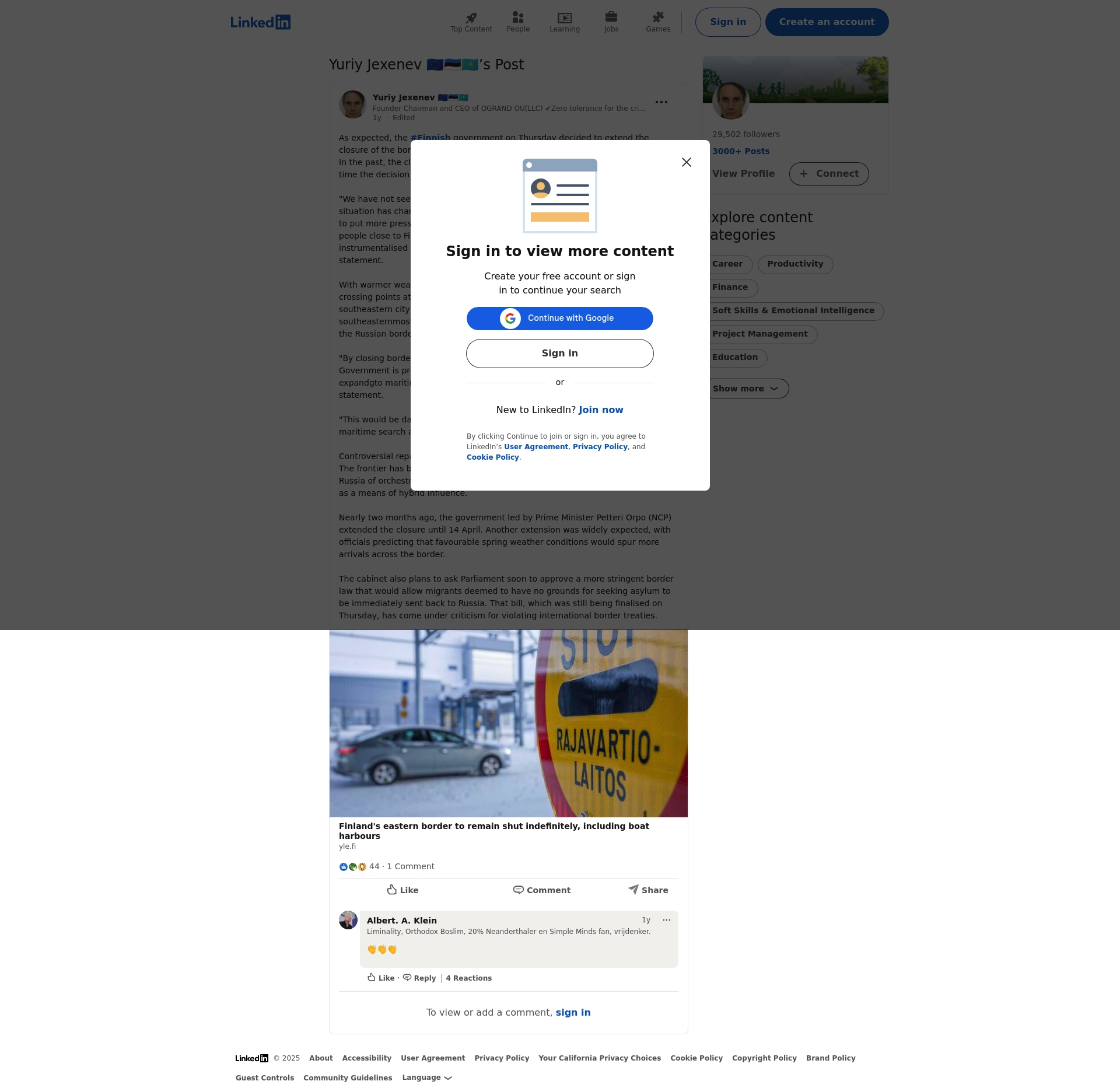 On April 4, 2024, the Finnish government announced that the closure of the border with Russia would be extended for an indefinite period. The closure, originally implemented as a response to alleged instrumentalized migration from Russia, now also includes small boat harbours due to concerns that migration could expand to maritime traffic as weather improves.