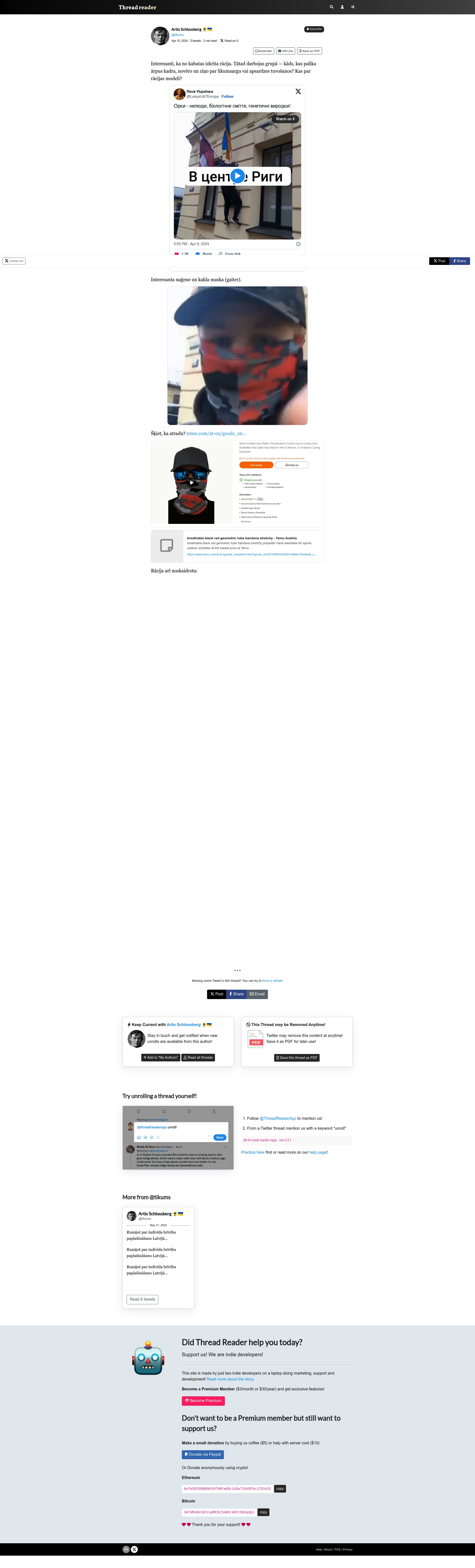Short Summary: Masked individual targeted Ukrainian flag on a building in central Riga.