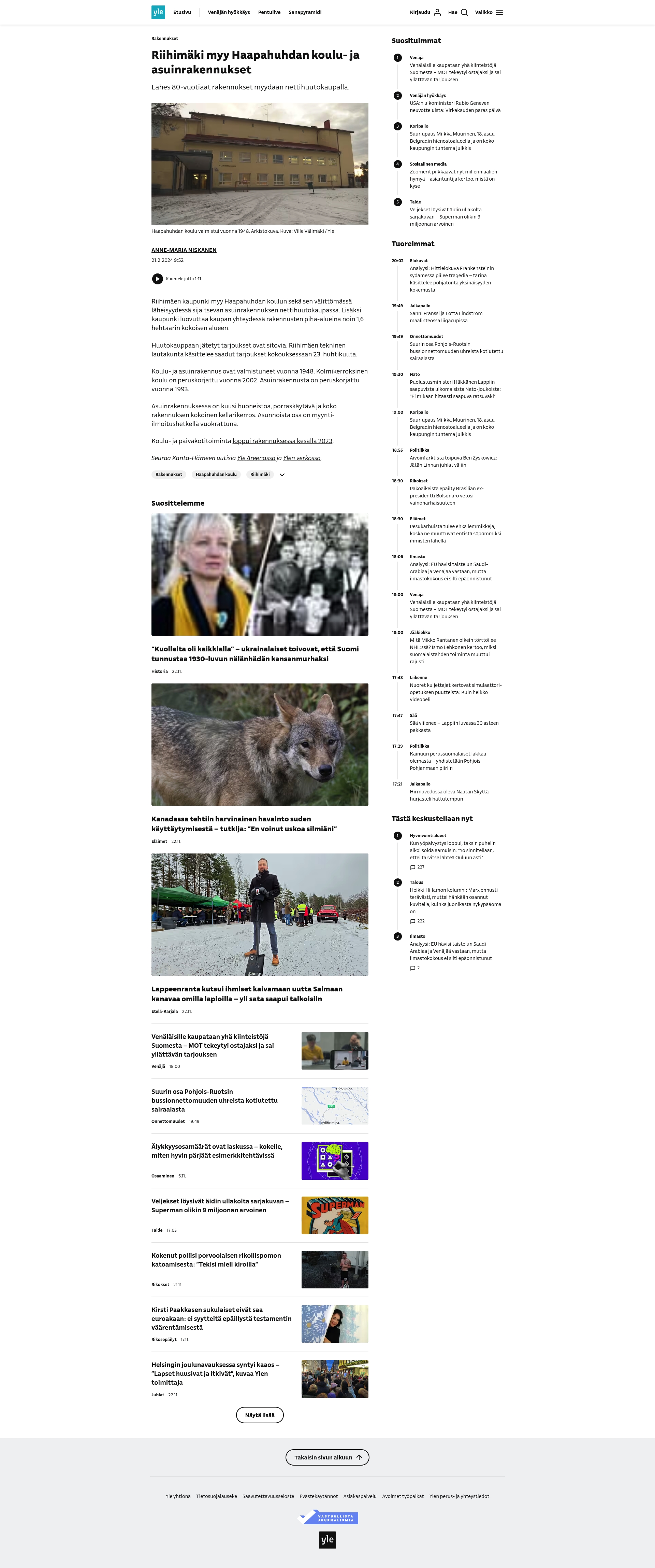 Headline: Riihimäki myy Haapahuhdan koulu- ja asuinrakennukset
