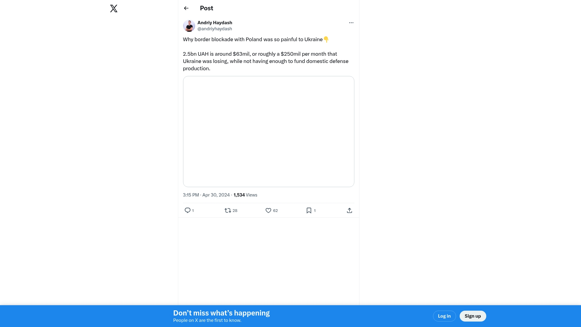 Short Summary: Ukraine lost ~$250 million per month due to a border blockade with Poland, hampering its ability to fund domestic defense.