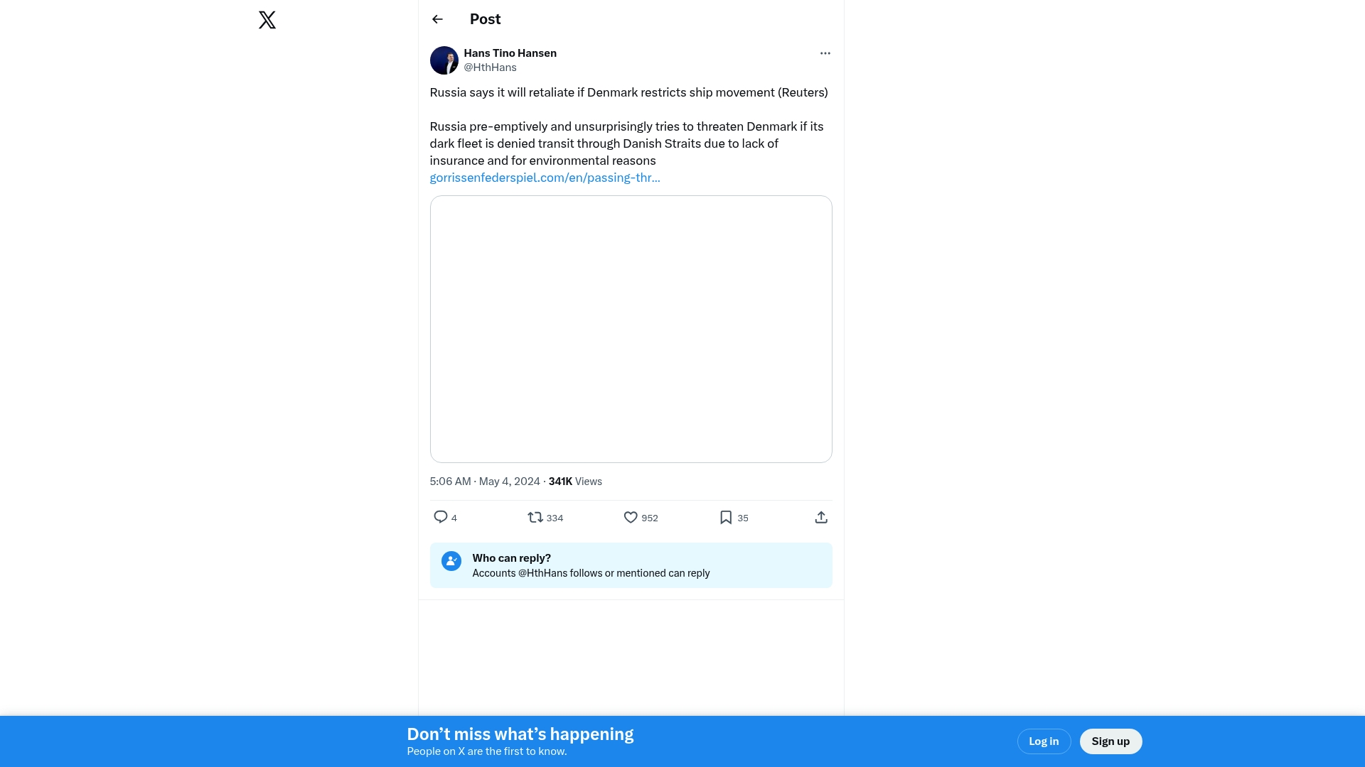 - "Russia pre-emptively and unsurprisingly tries to threaten Denmark if its dark fleet is denied transit through Danish Straits due to lack of insurance and for environmental reasons"