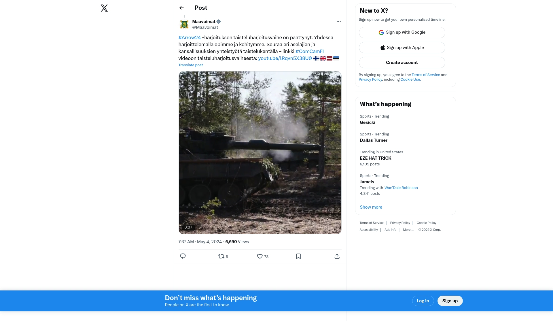 The FTX-phase of exercise #Arrow24 has ended. Through mutual training, we learn & improve. Join us in the exercise and see how different branches and nationalities work #together as one in the battlefield link to #ComCamFI video: https://youtu.be/lRqvn5X38U0 ????????