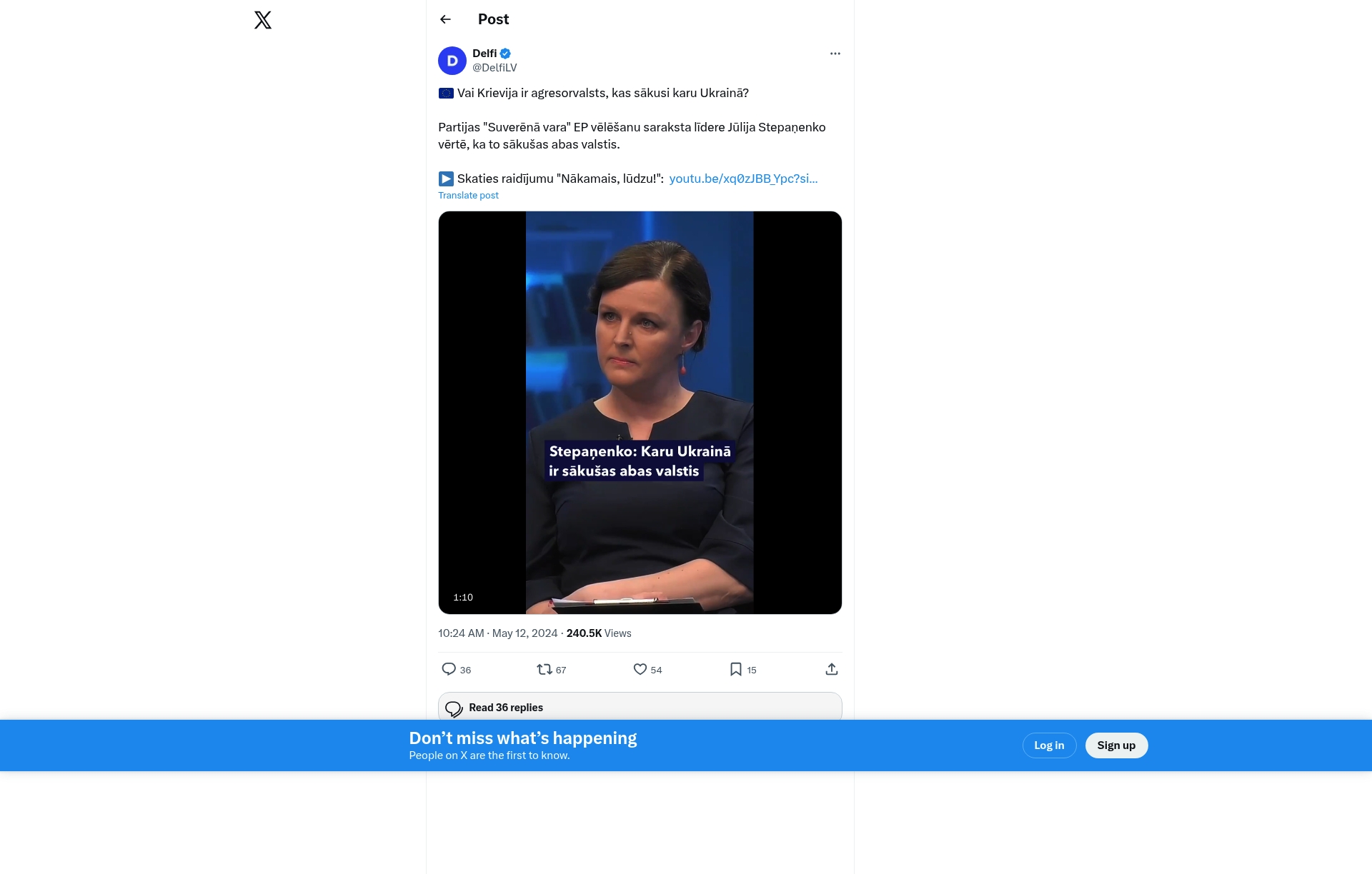 Headline: Latvian party leader echoes Russian propaganda on Ukraine war responsibility live on air