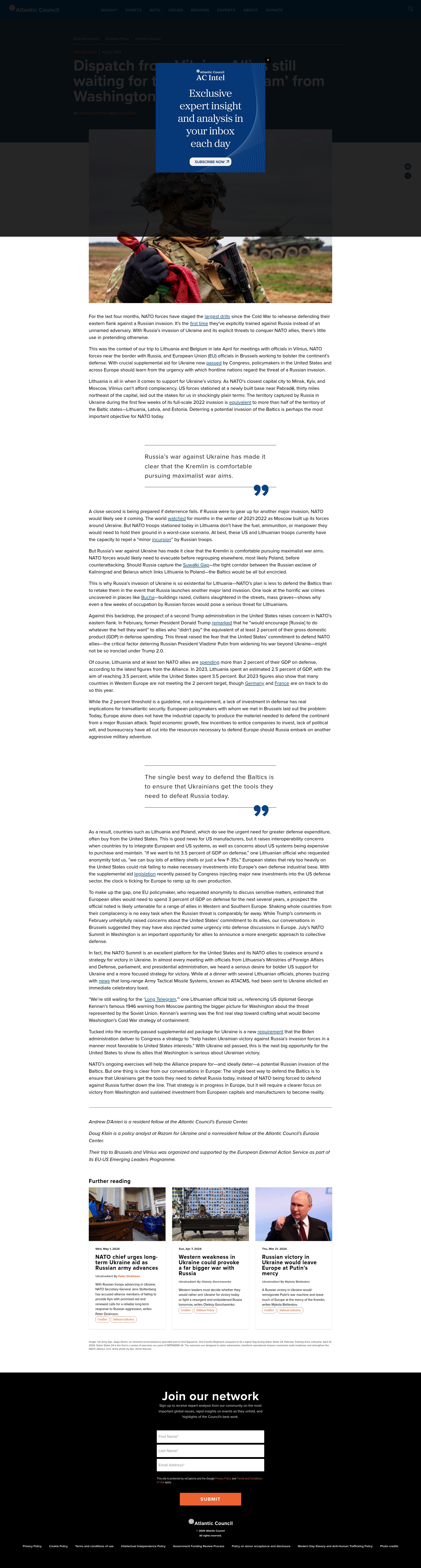 Headline: Dispatch from Vilnius: The Baltics are still waiting for ‘the new long telegram’ from Washington