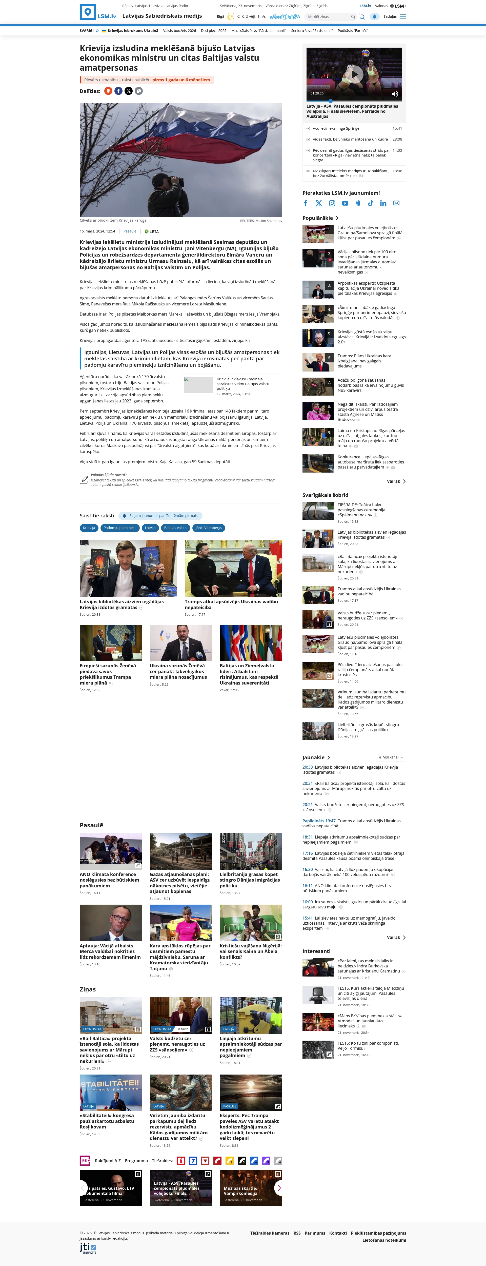 Headline: Krievija izsludina meklēšanā bijušo Latvijas ekonomikas ministru un citas Baltijas valstu amatpersonas