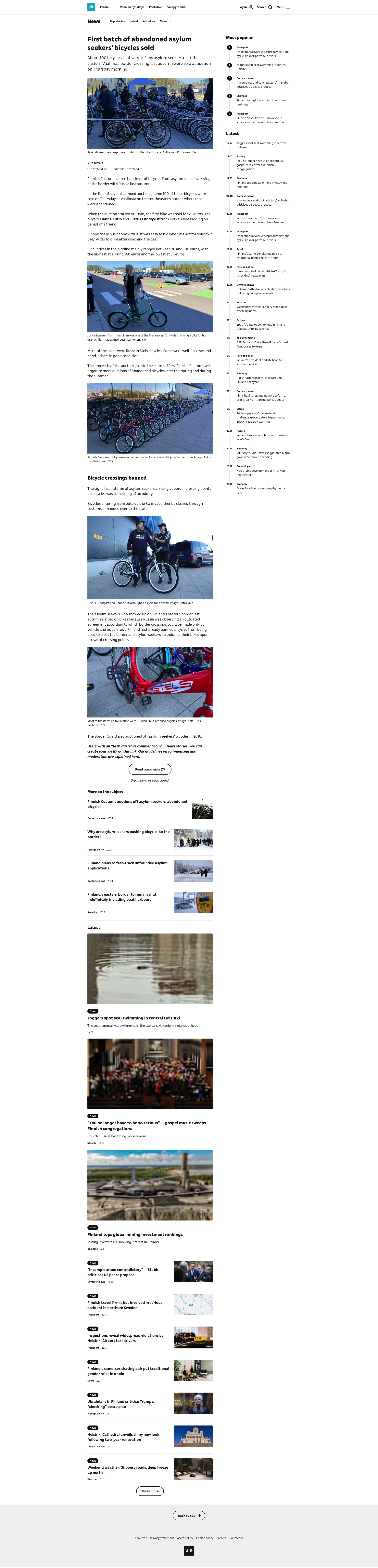 - "About 100 bicycles that were left by asylum seekers near the eastern Vaalimaa border crossing last autumn were sold at auction on Thursday morning."