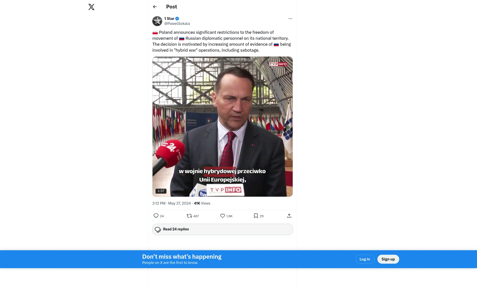- "Poland announces significant restrictions to the freedom of movement of Russian diplomatic personnel on its national territory."