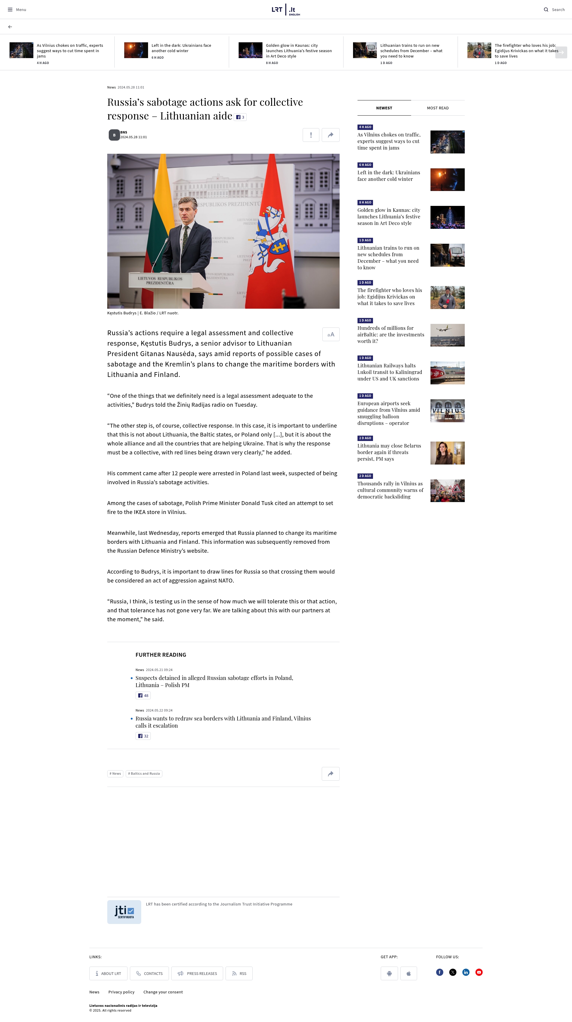 Headline: Russia’s sabotage actions ask for collective response – Lithuanian aide