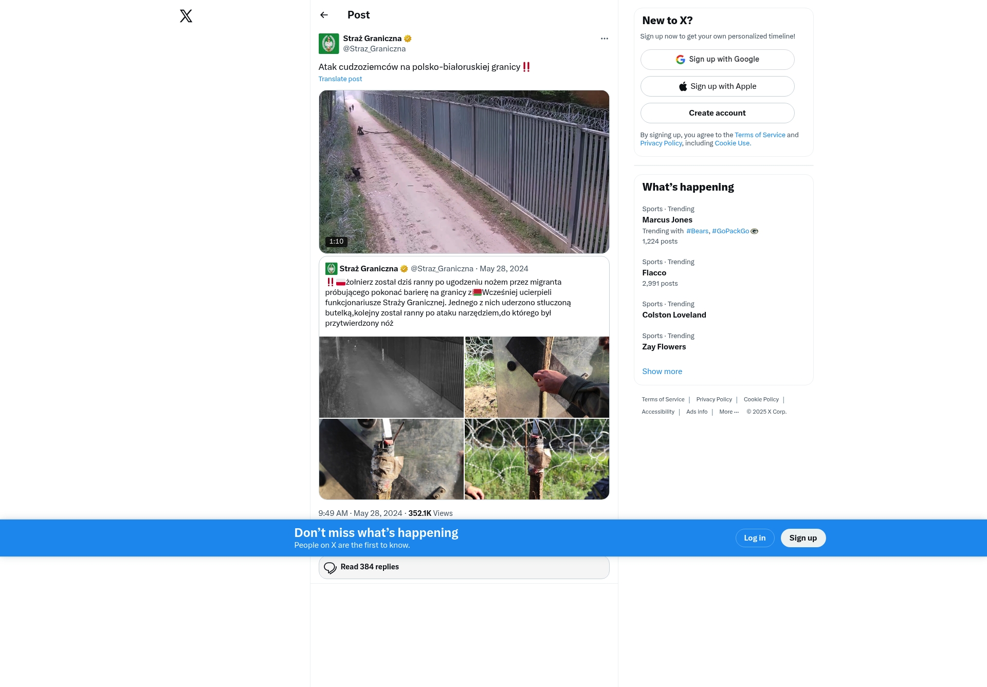 Headline: Atak cudzoziemców na polsko-białoruskiej granicy‼️