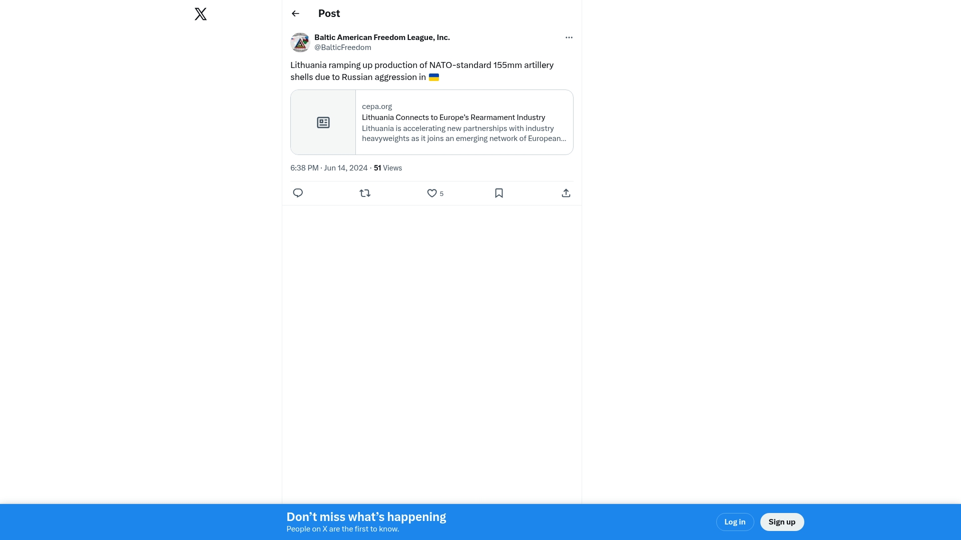 - "Lithuania ramping up production of NATO-standard 155mm artillery shells due to Russian aggression in [Ukraine flag]"