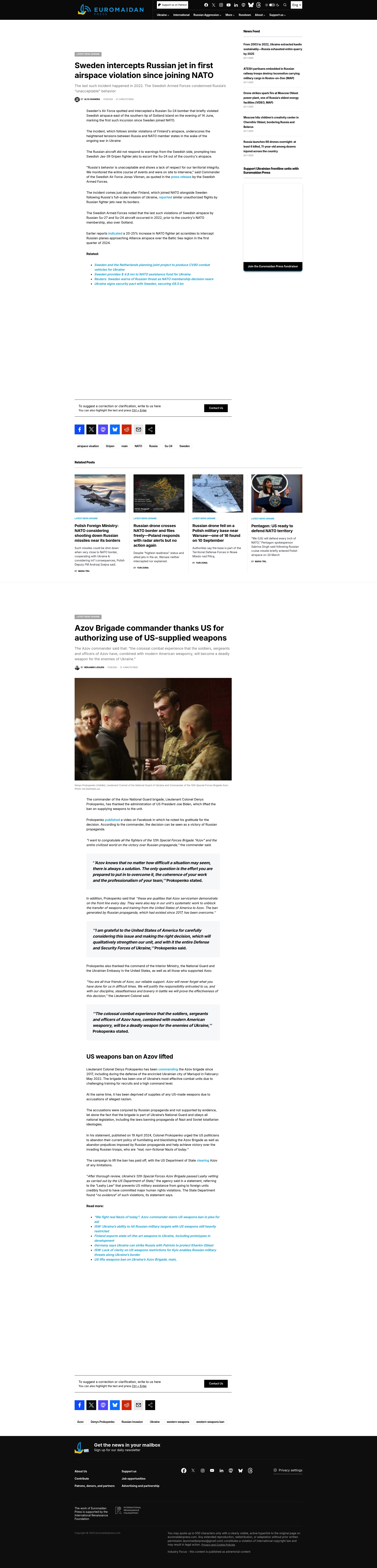 - "This is the first such airspace violation since Sweden joined NATO in March 2024."