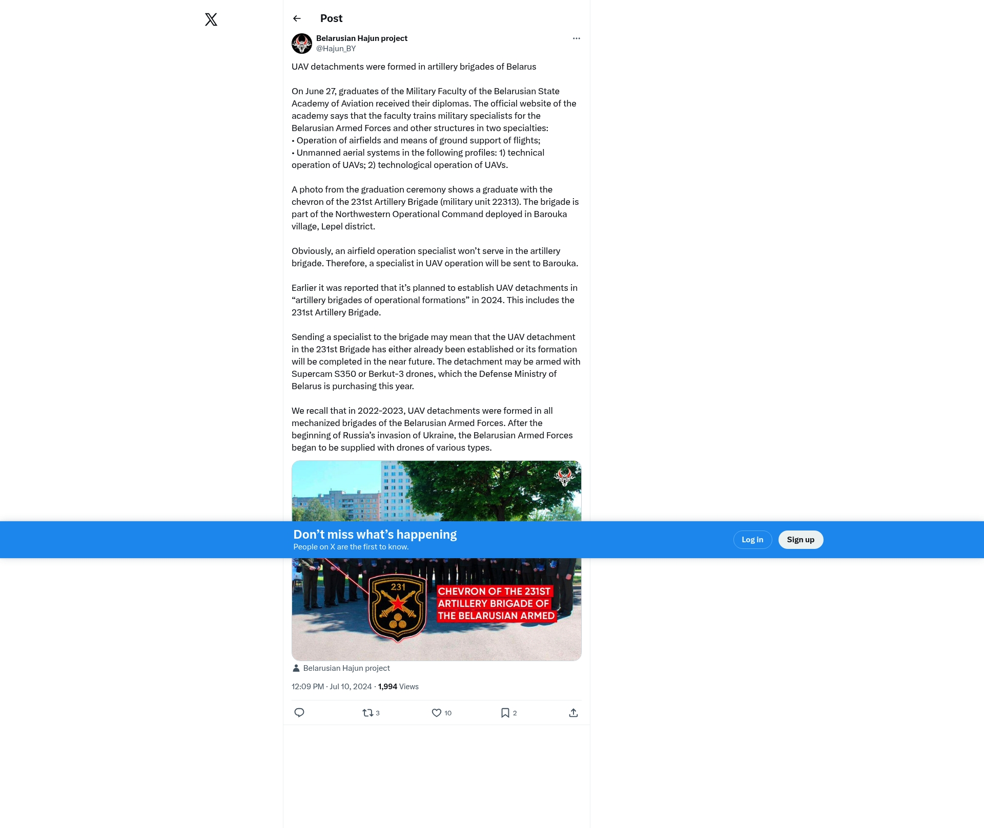 - "UAV detachments were formed in artillery brigades of Belarus"