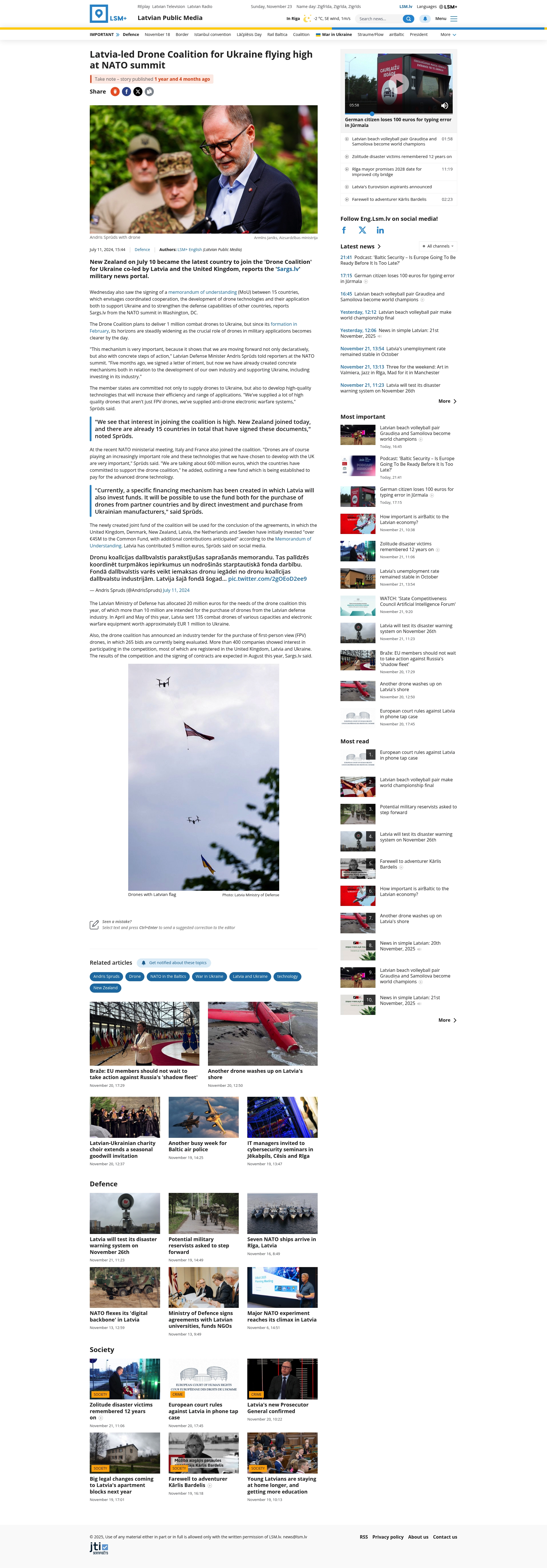 Headline: Latvia-led Drone Coalition for Ukraine flying high at NATO summit