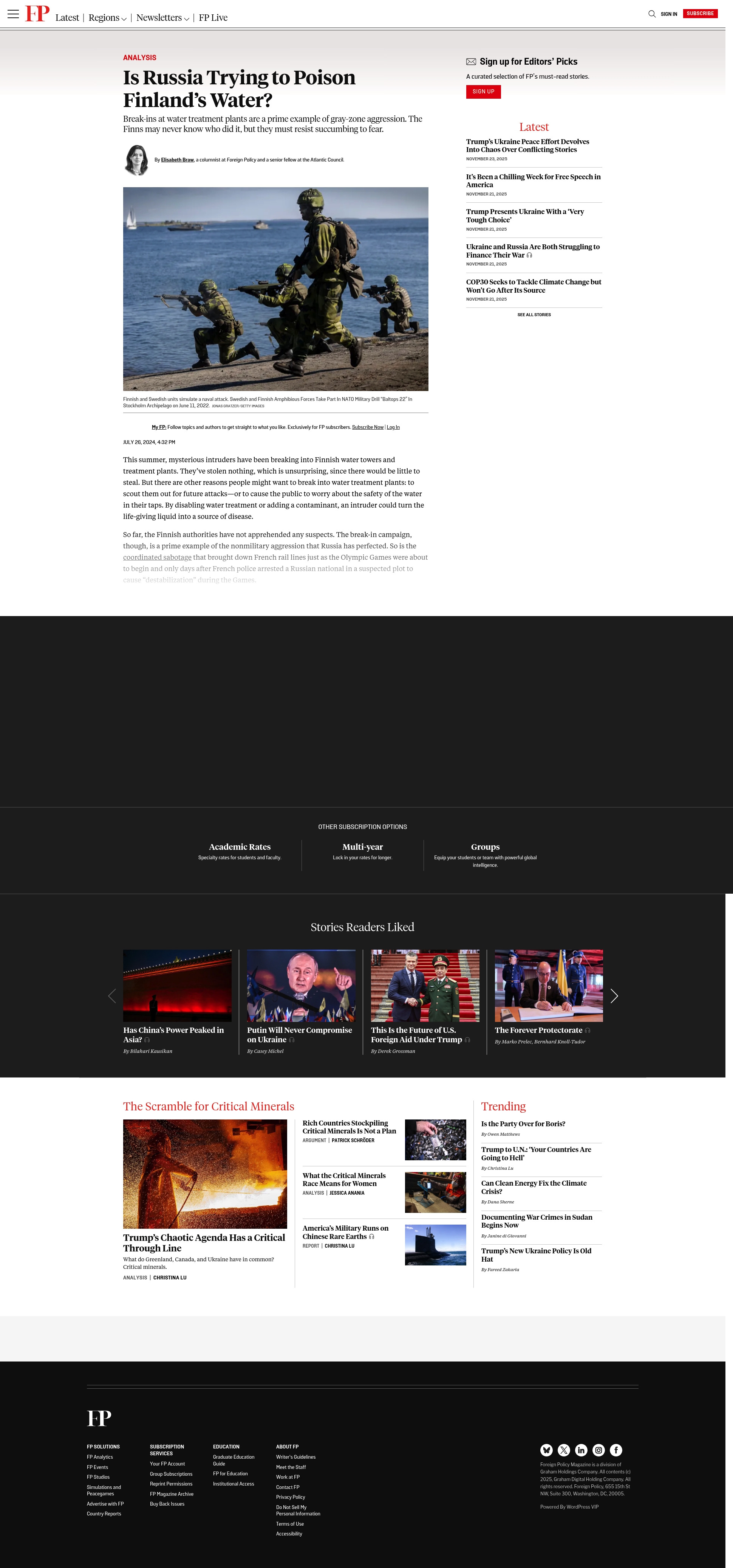 Headline: Is Russia Trying to Poison Finland’s Water?