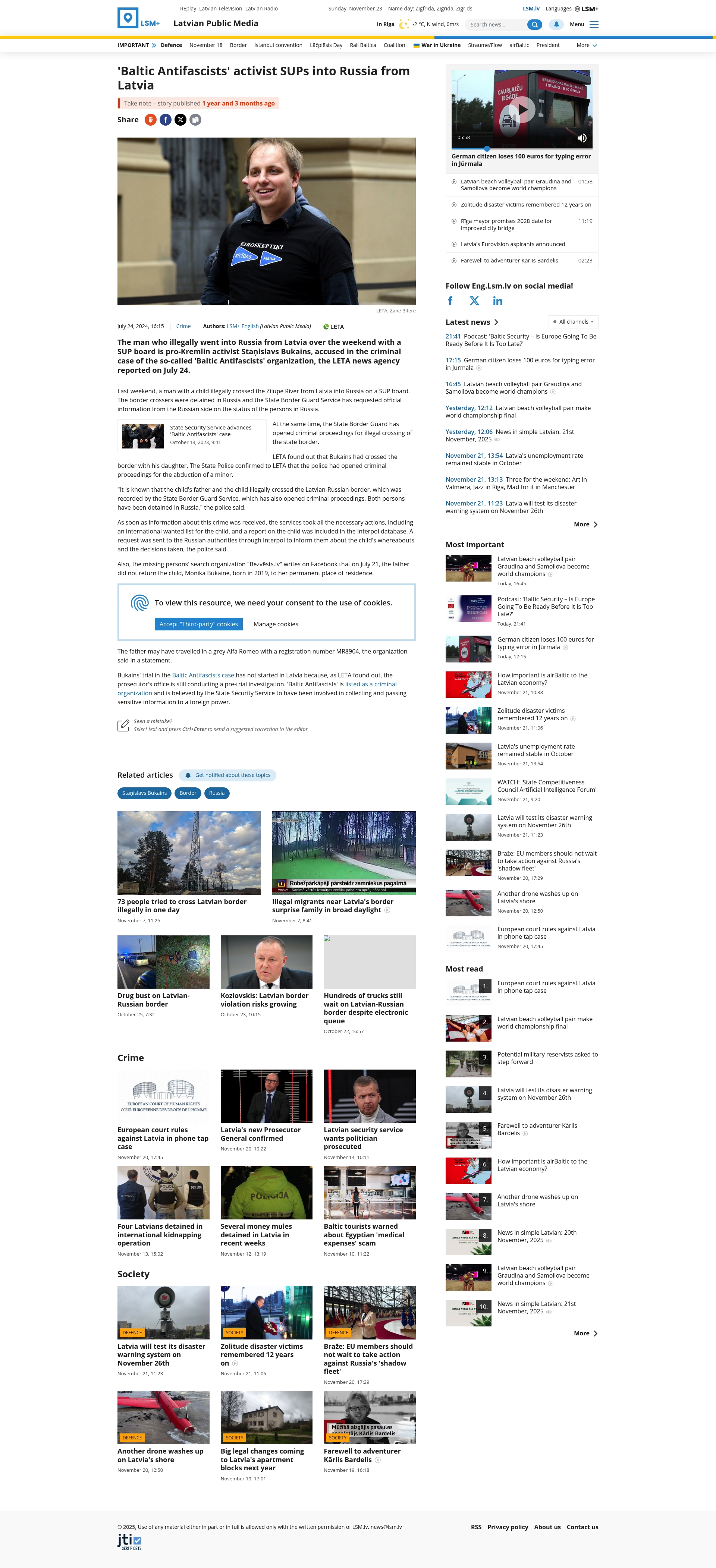 - "The man who illegally went into Russia from Latvia over the weekend with a SUP board is pro-Kremlin activist Stasijslavs Bukais, accused in the criminal case of the so-called 'Baltic Antifascists' org..."