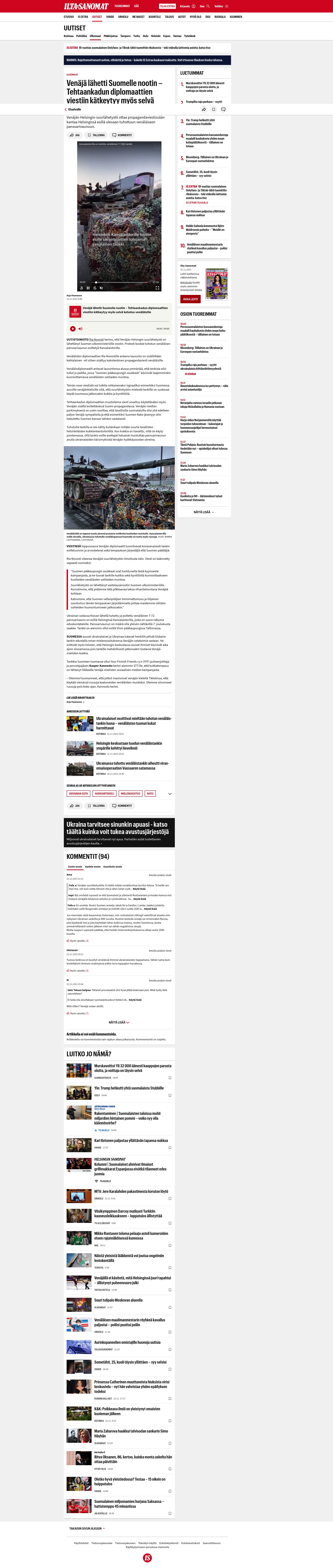 - "Venäjän ulkoministeriö toimitti viime viikolla nootin Suomen Moskovan-suurlähettiläälle."