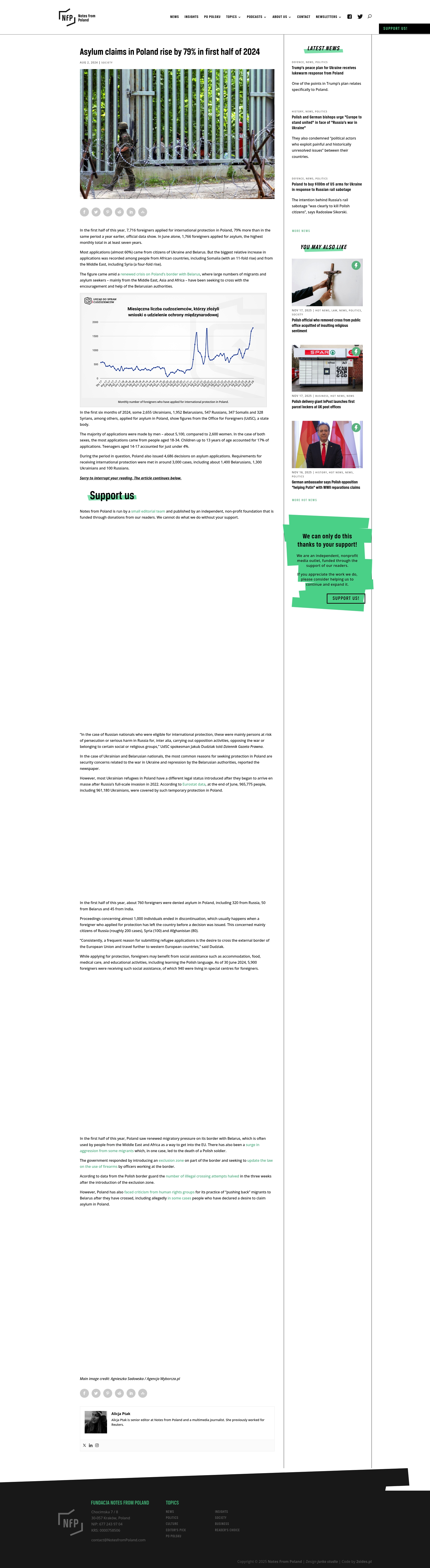 Headline: Asylum claims in Poland rise by 79% in first half of 2024