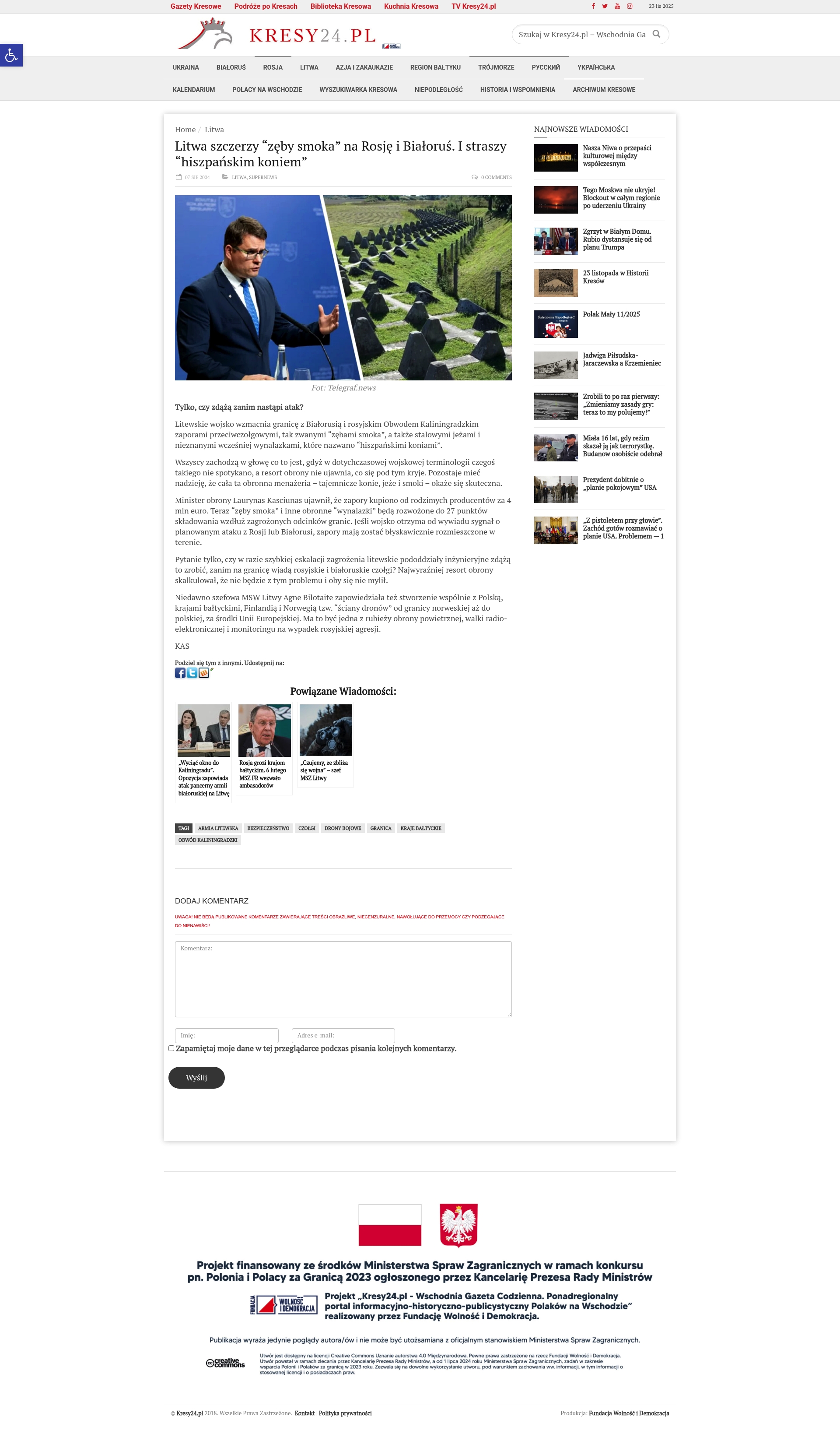 Headline: Litwa szczerzy “zęby smoka” na Rosję i Białoruś. I straszy “hiszpańskim koniem”