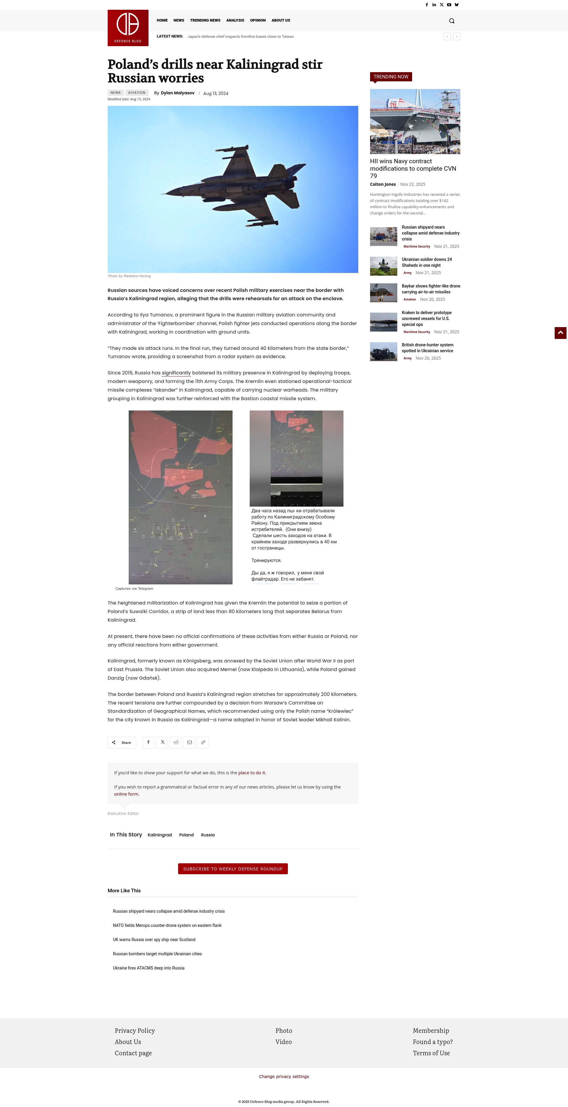 - "Russian sources have voiced concerns over recent Polish military exercises near the border with Russia’s Kaliningrad region, alleging that the drills were rehearsals for an attack on the enclave."