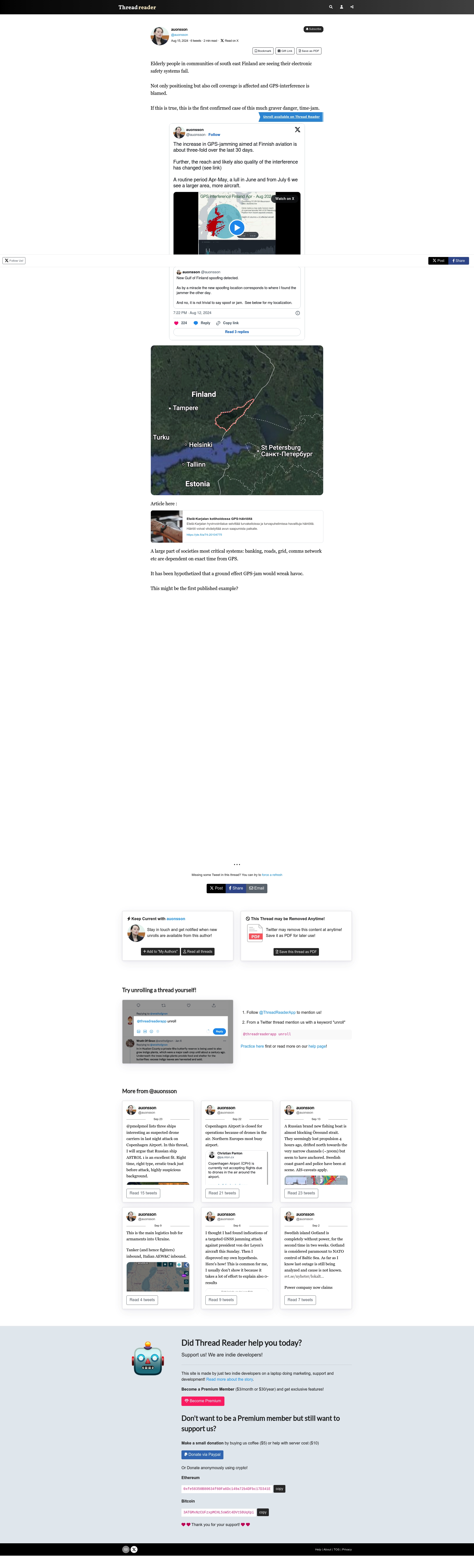 Notes: GPS/electronic safety systems failing in SE ?? Finland Time-jam interference suspected