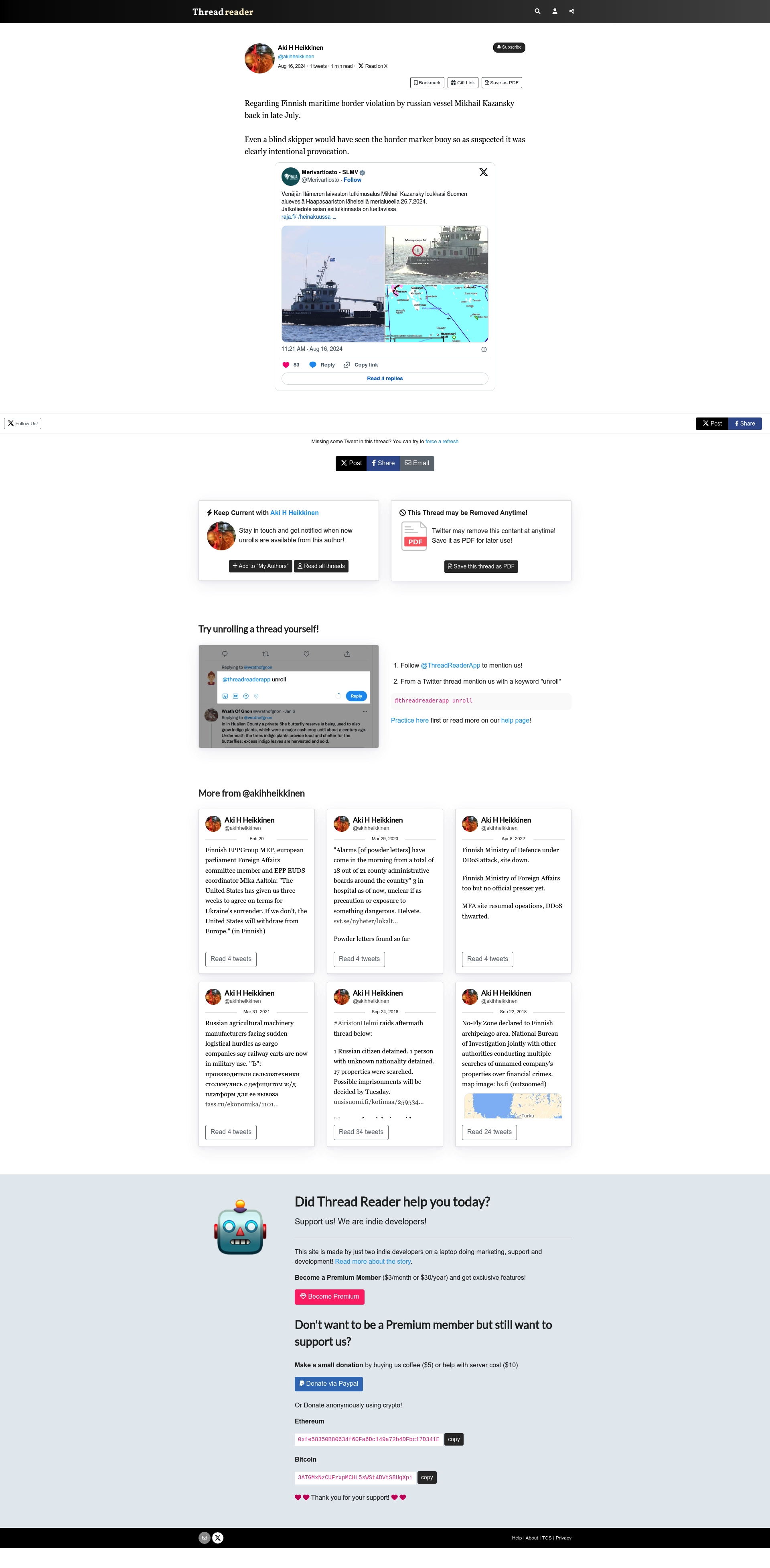 - "Regarding Finnish maritime border violation by Russian vessel Mikhail Kazansky back in late July."